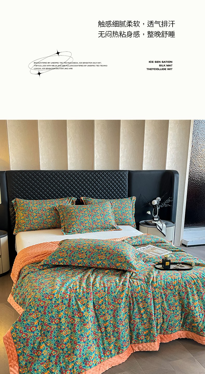 商品名称:宝士康家纺 2025新款10A抗菌双层纱豆豆绒夏被 金桔
