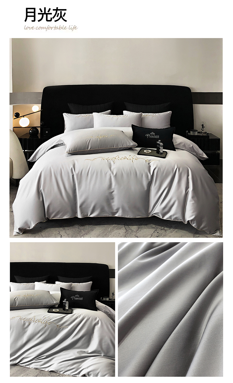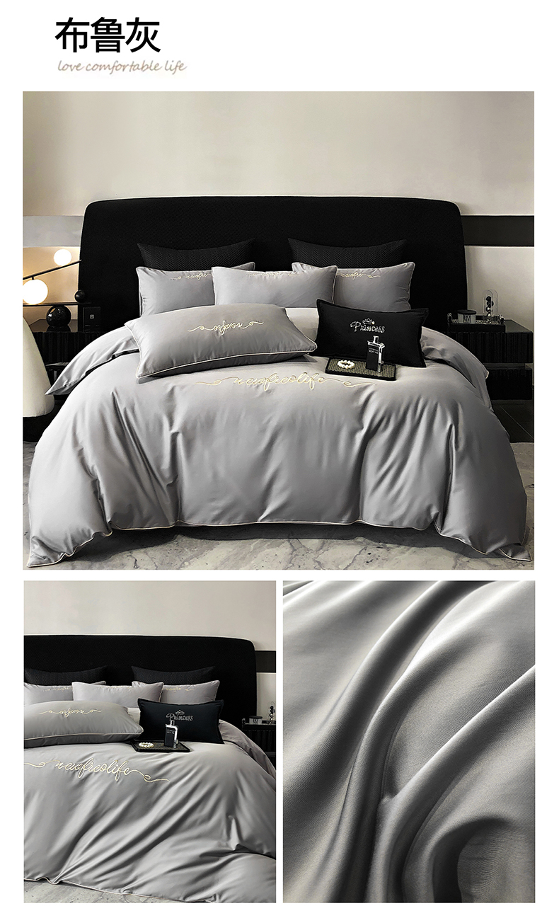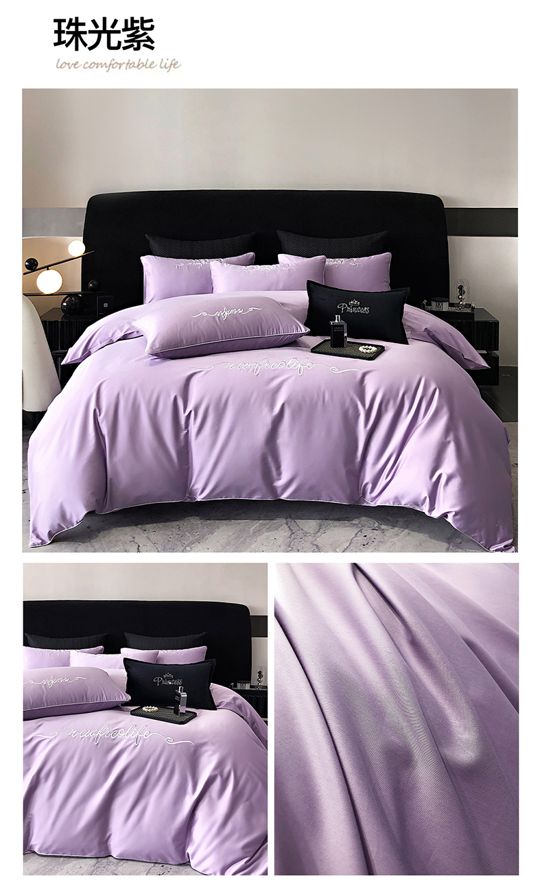 (总)禧澜庭 2026新款高支纯棉全棉斜纹四件套刺绣绣花款轻奢三件套--简爱系列,典雅灰,芙蓉粉,芙蓉粉+浅紫,贵族白+绿色,贵族白+浅紫,贵族白+香槟,莫奈蓝,莫奈蓝+浅灰,拾光绿+香槟,星辰紫