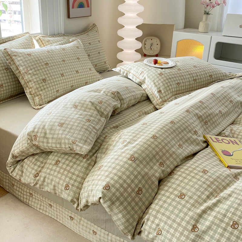 当前位置: 91家纺网 > 商品网购 > 床品套件 > 四件套 > 其它四件套 > 包小包 2025新款简约时尚印花精梳棉小奶棉清新四件套 维维熊