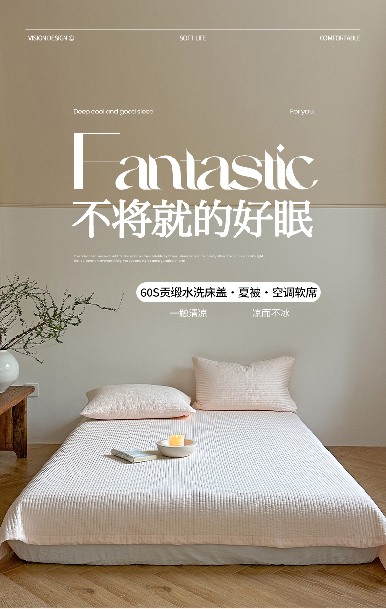 漫调家纺 2025新款双面60S贡缎床盖夏被 淡奶昔