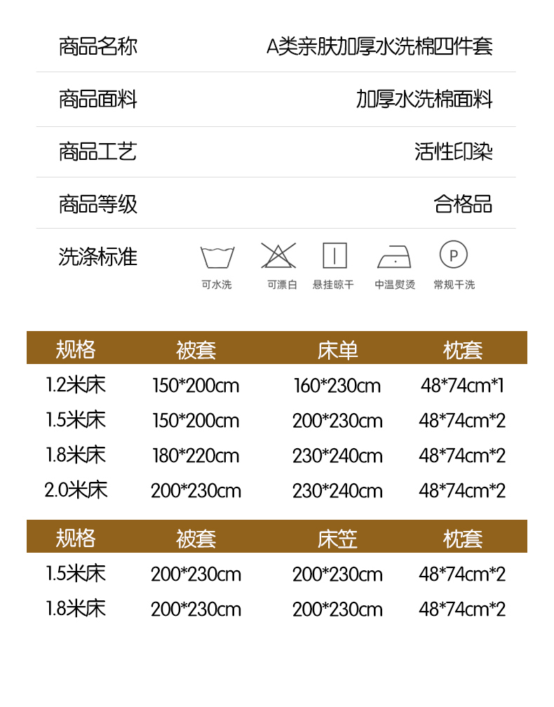 1.5m床笠款四件套(被套180*220cm) | ¥45.00 |
