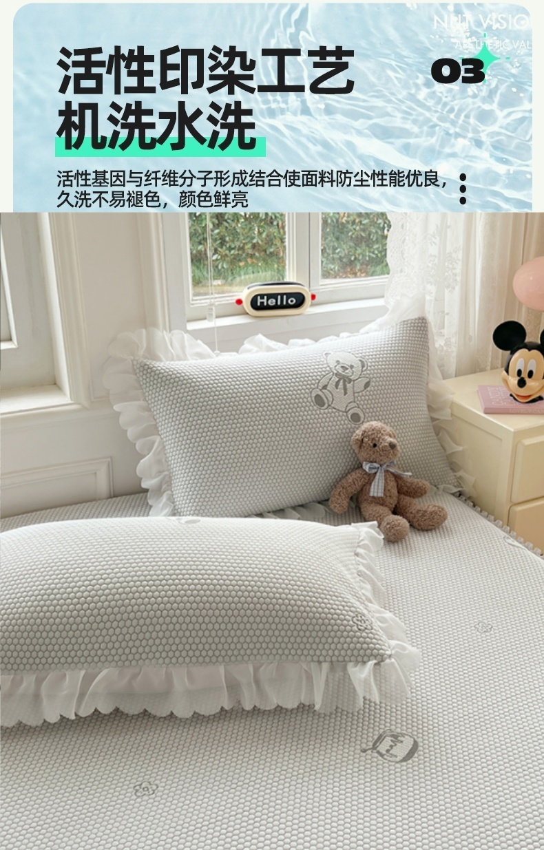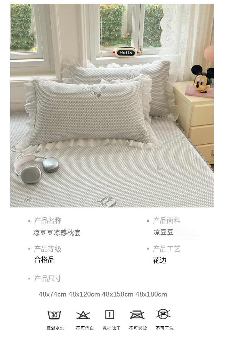 商品名称:梦舒羽 2025春夏新款冰豆豆花边单人单枕套枕套单件 冰豆豆-小熊灰