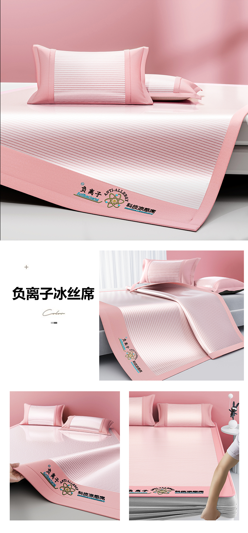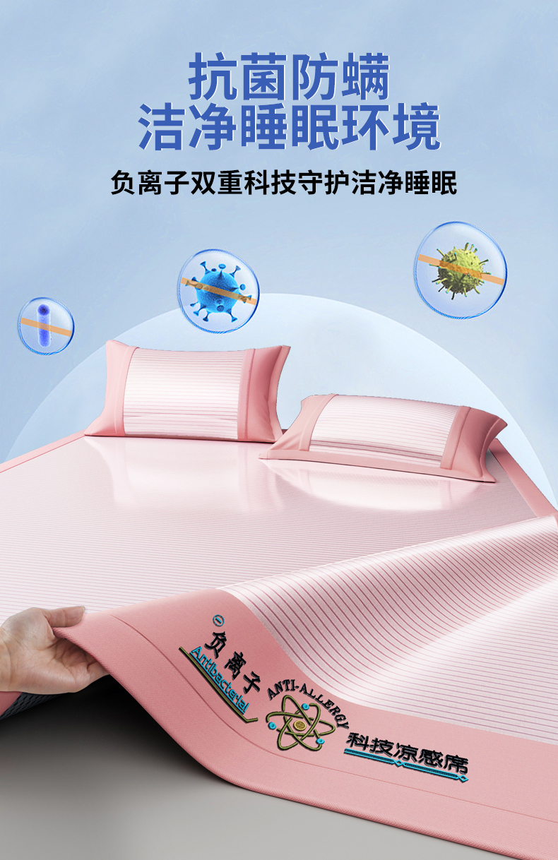 当前位置: 91家纺网 > 商品网购 > 床品套件 > 三件套 > 悠米悠家 2025新款负离子+抗菌系列凉席床笠三件套 负离子粉色