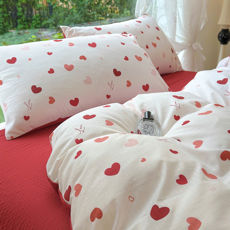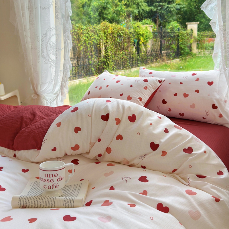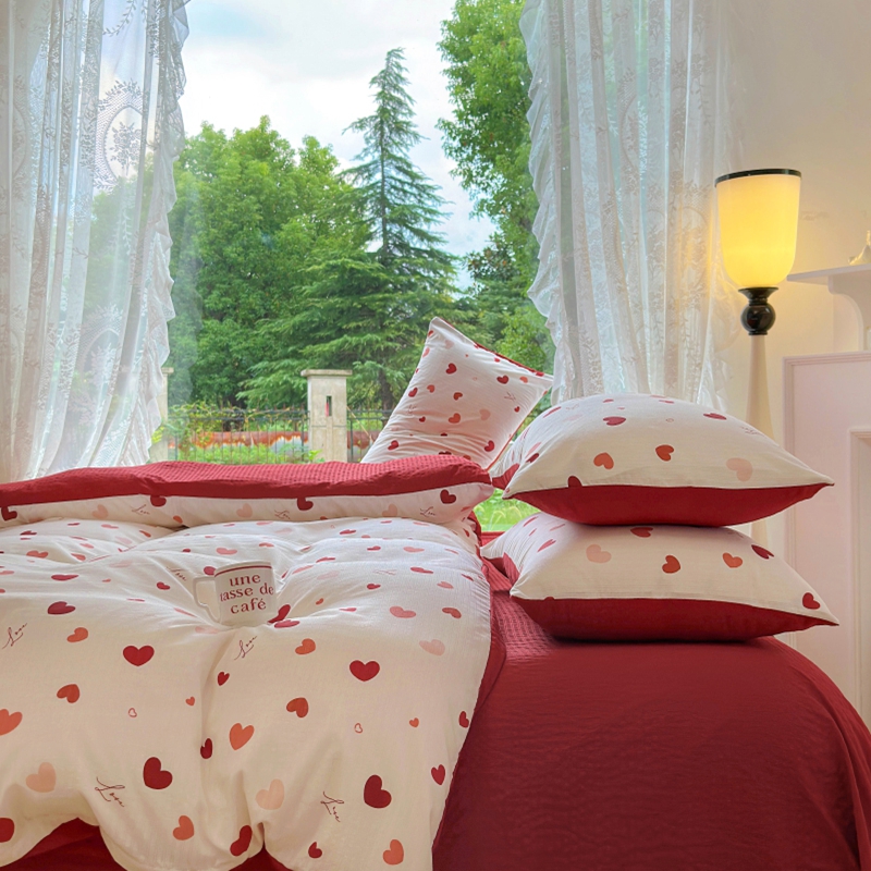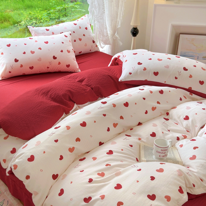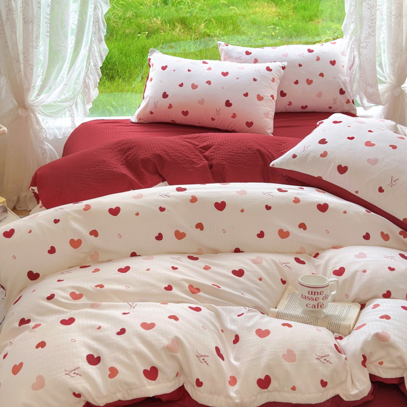 商品名称:仟网汇 2025新款亲肤舒适提花小竺棉彩竹棉彩竺棉系列四件套 彩竺棉-红爱心