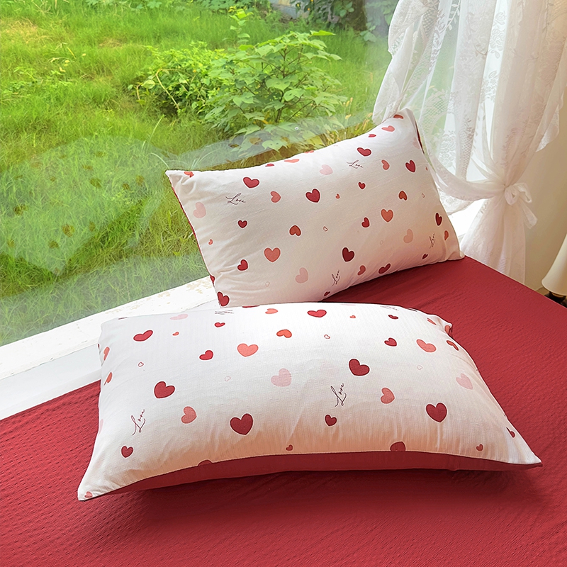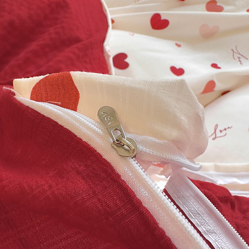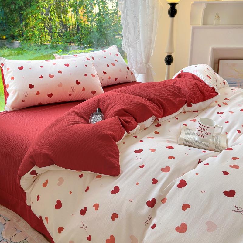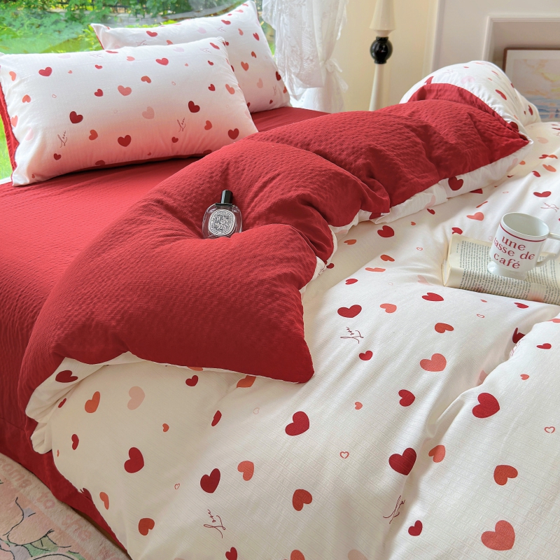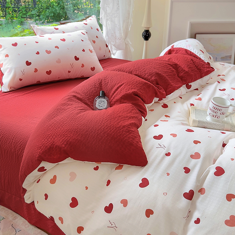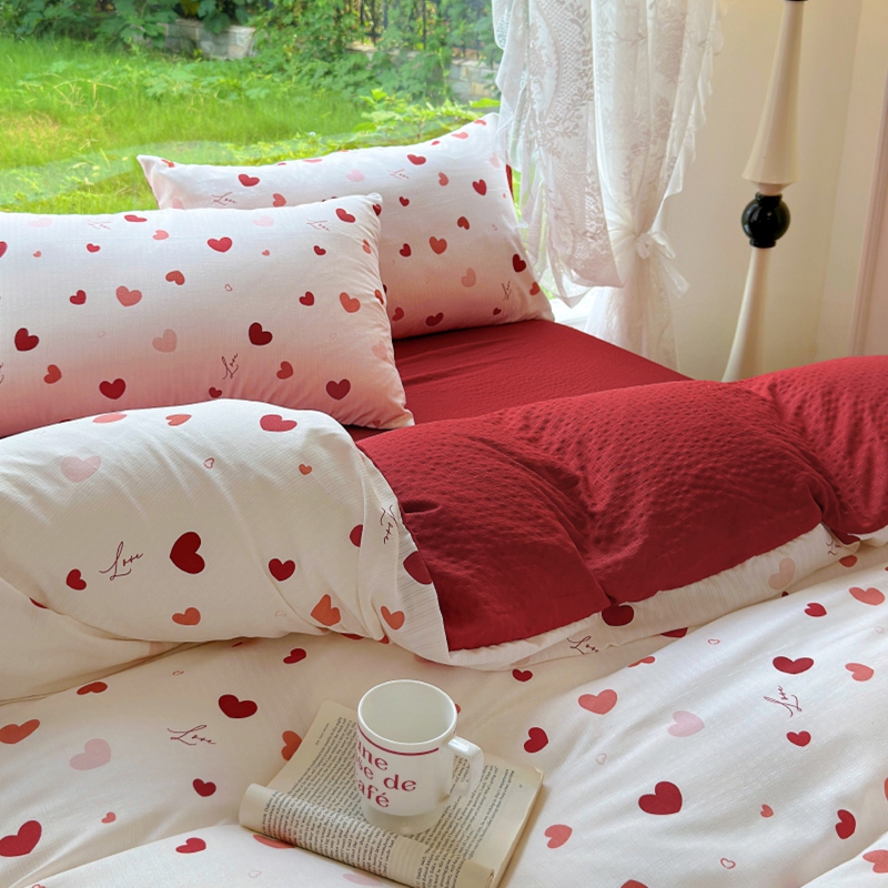 商品名称:仟网汇 2025新款亲肤舒适提花小竺棉彩竹棉彩竺棉系列四件套 彩竺棉-红爱心