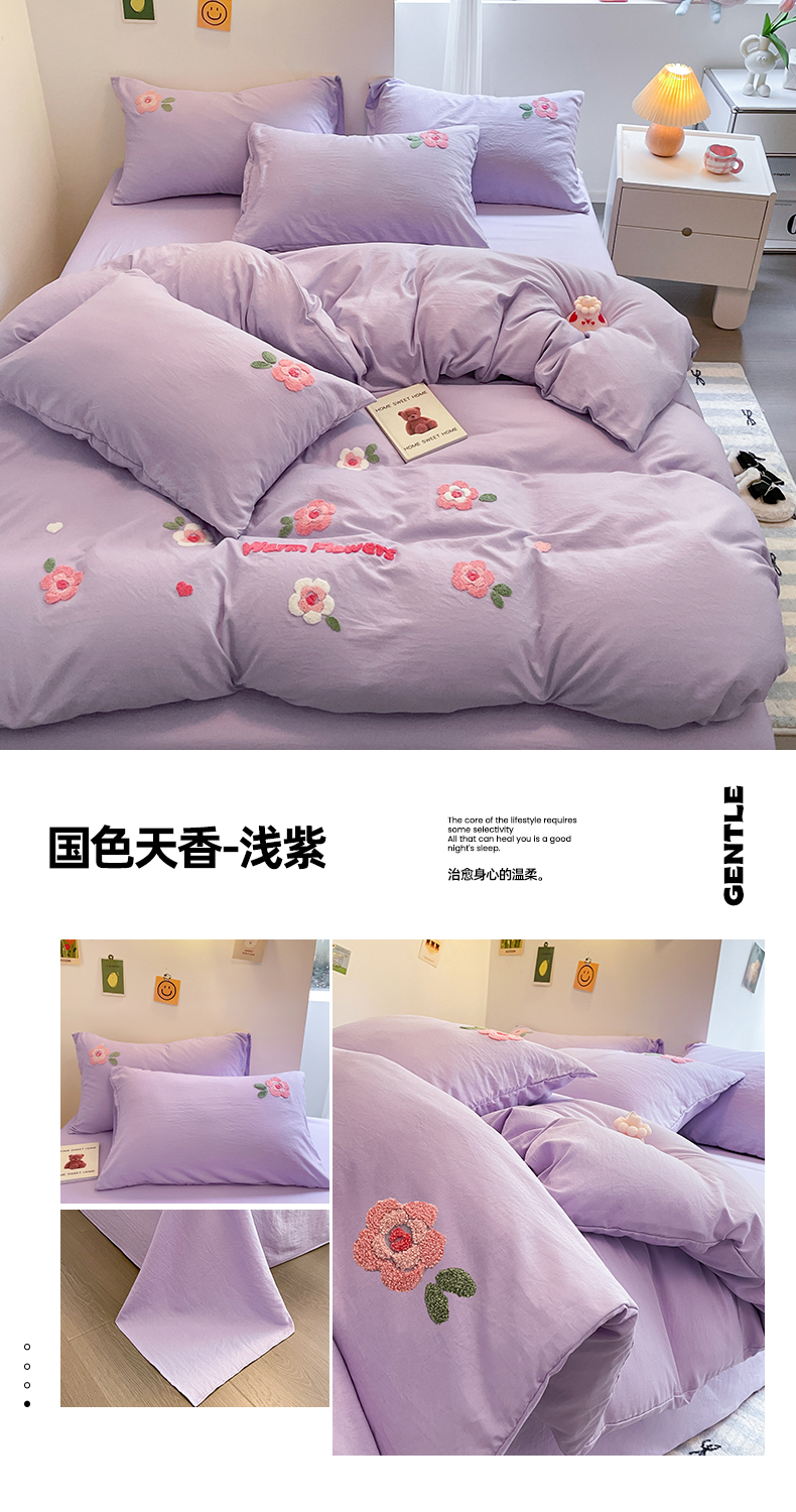当前位置: 91家纺网 > 商品网购 > 床品套件 > 四件套 > 毛巾绣四件套 > 优卡迪家纺馆 2025新款水洗棉毛巾绣四件套(下载文件夹包含买家秀) 国色天香-浅紫