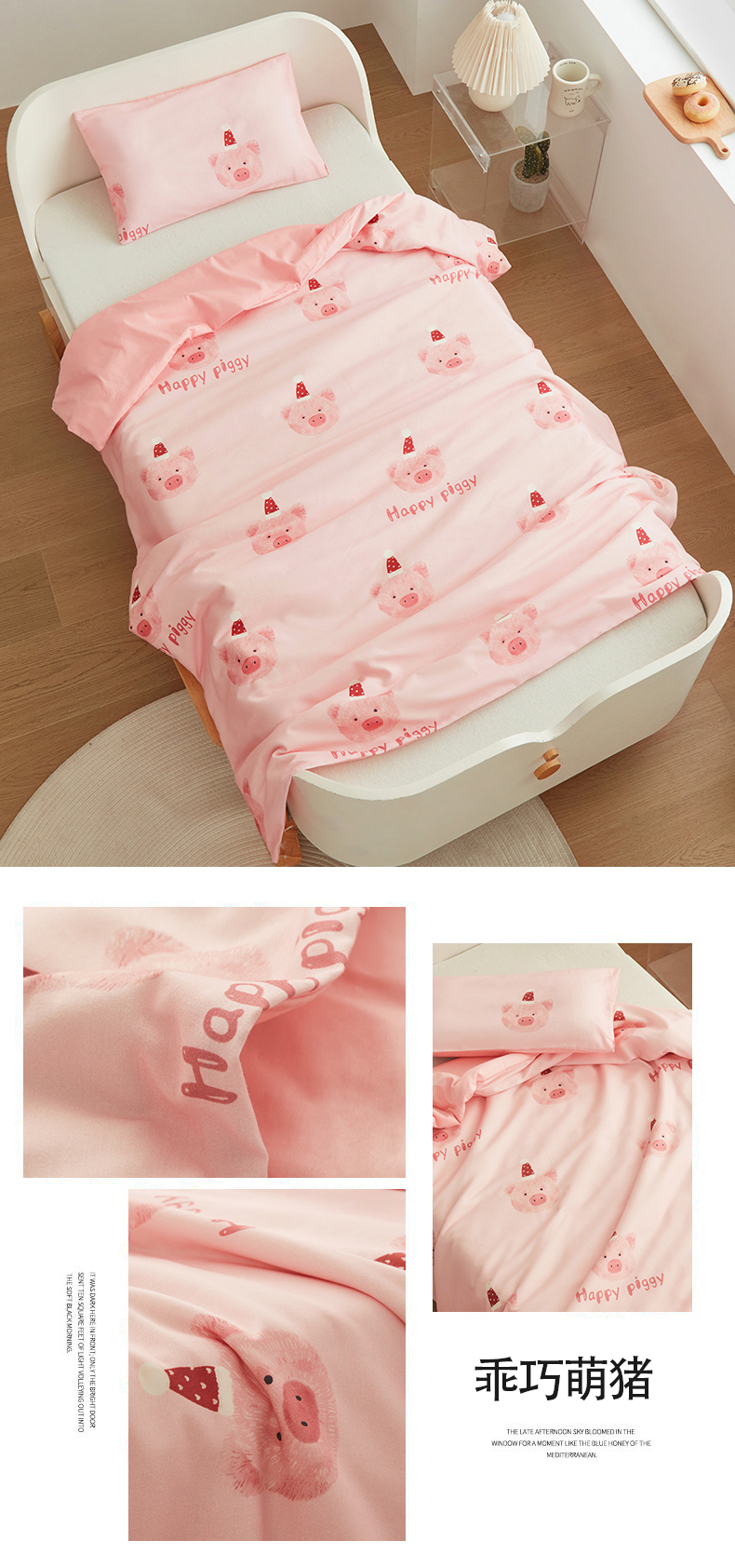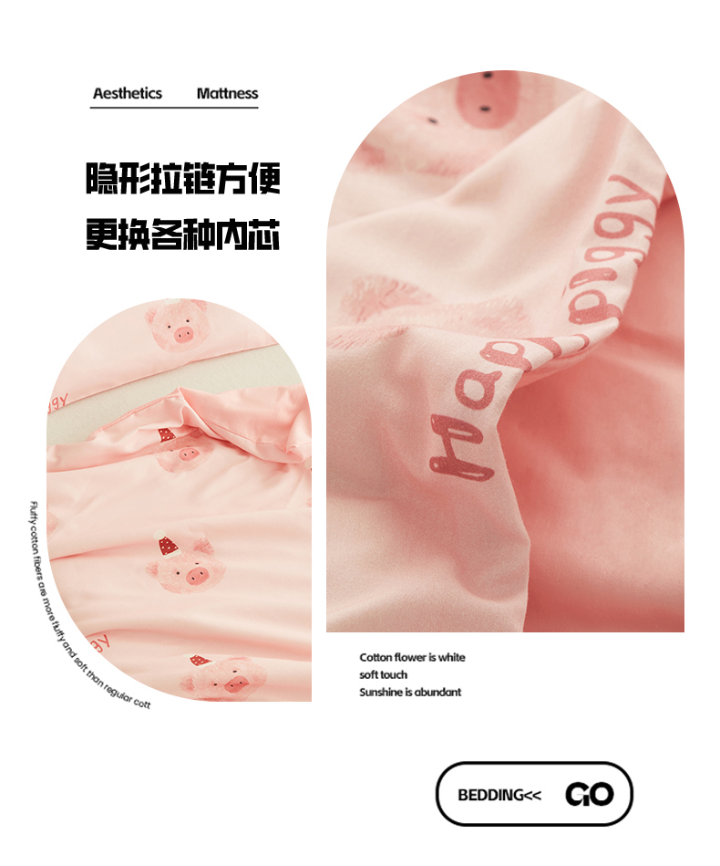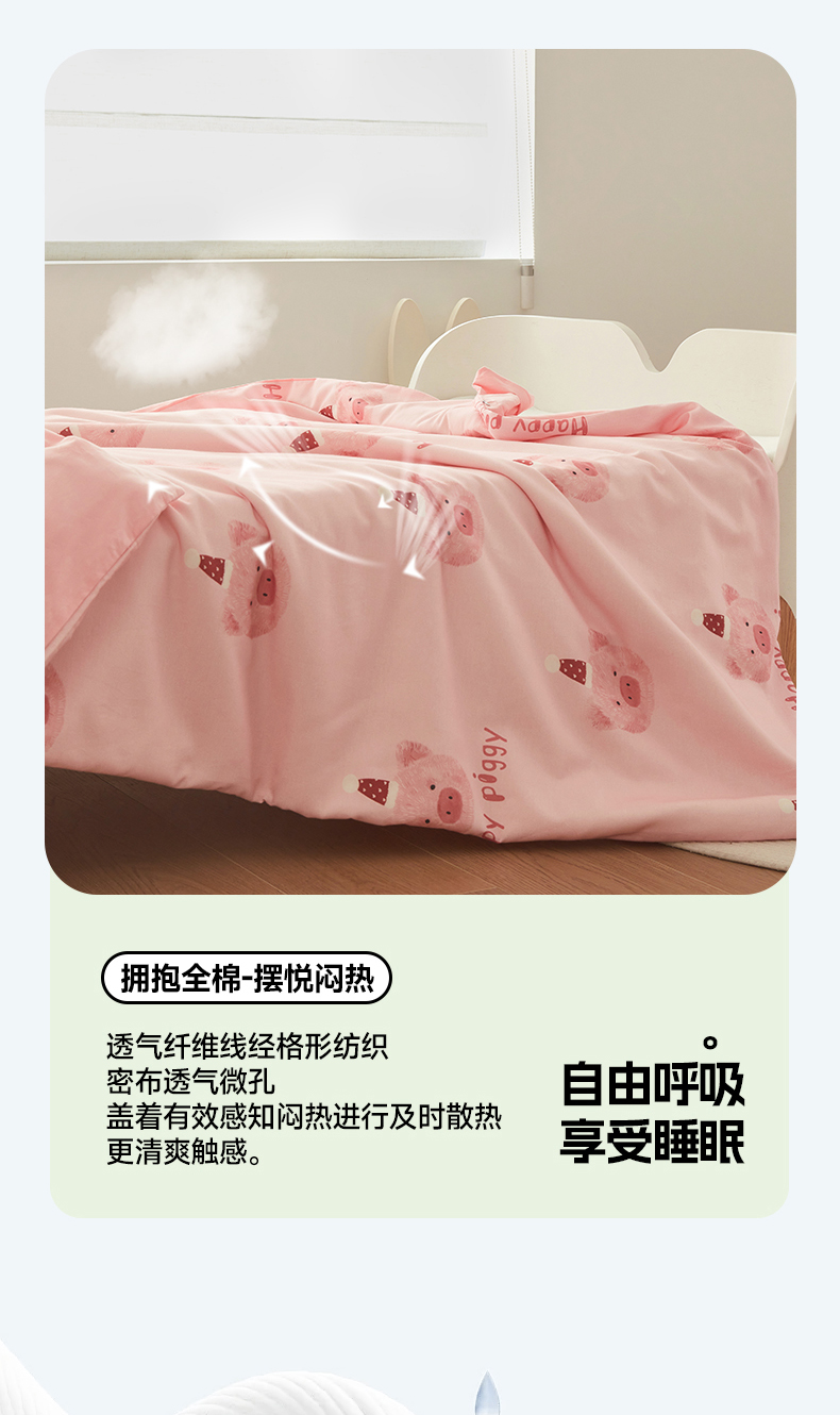 商品名称:艾佳宝贝 2025新款A类儿童全棉多功能单被套 乖巧萌猪
