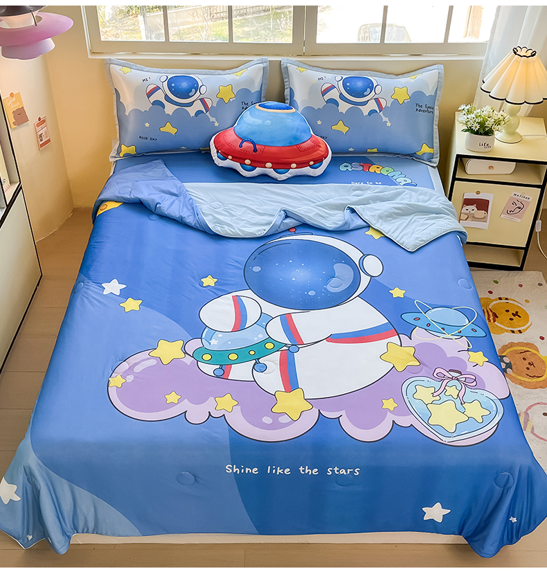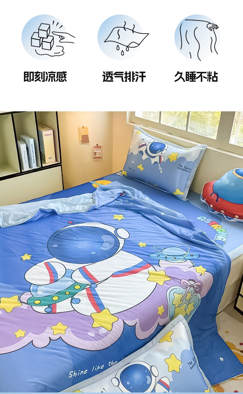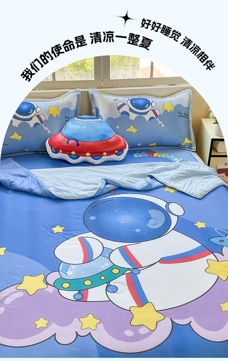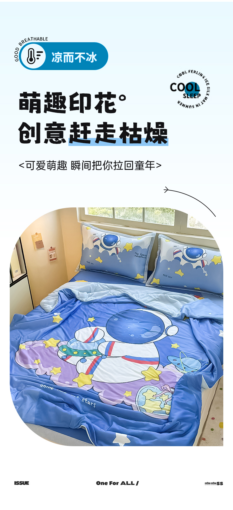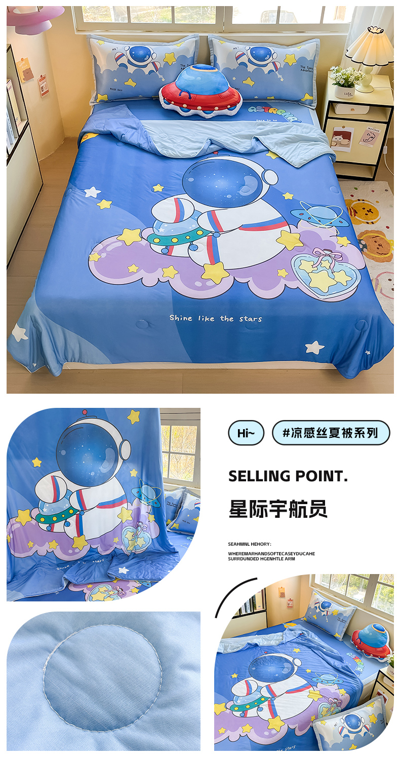 • 91家纺网 家纺一手货源 找家纺 博雅 2025新款A类大版数码印花冰丝凉席可组合凉感丝夏被-宇航员 星际宇航员
