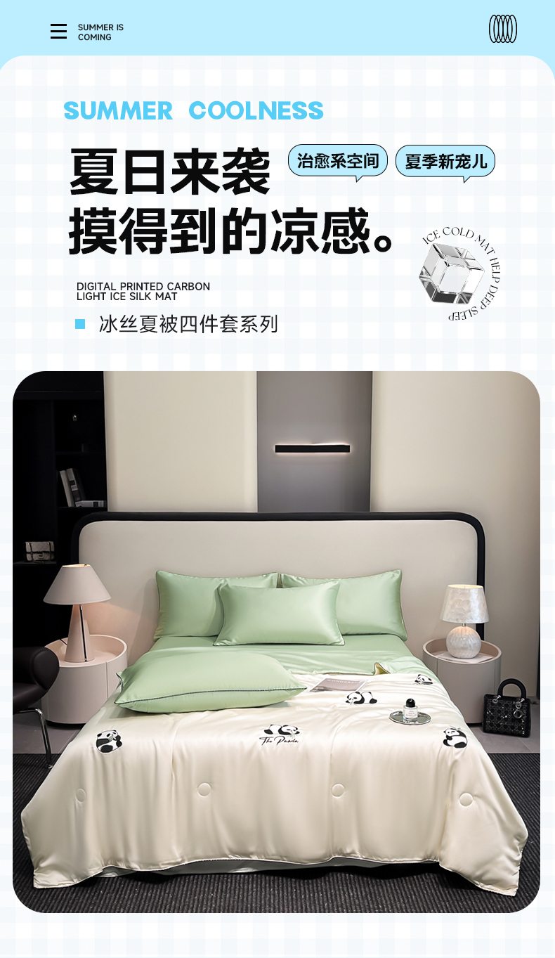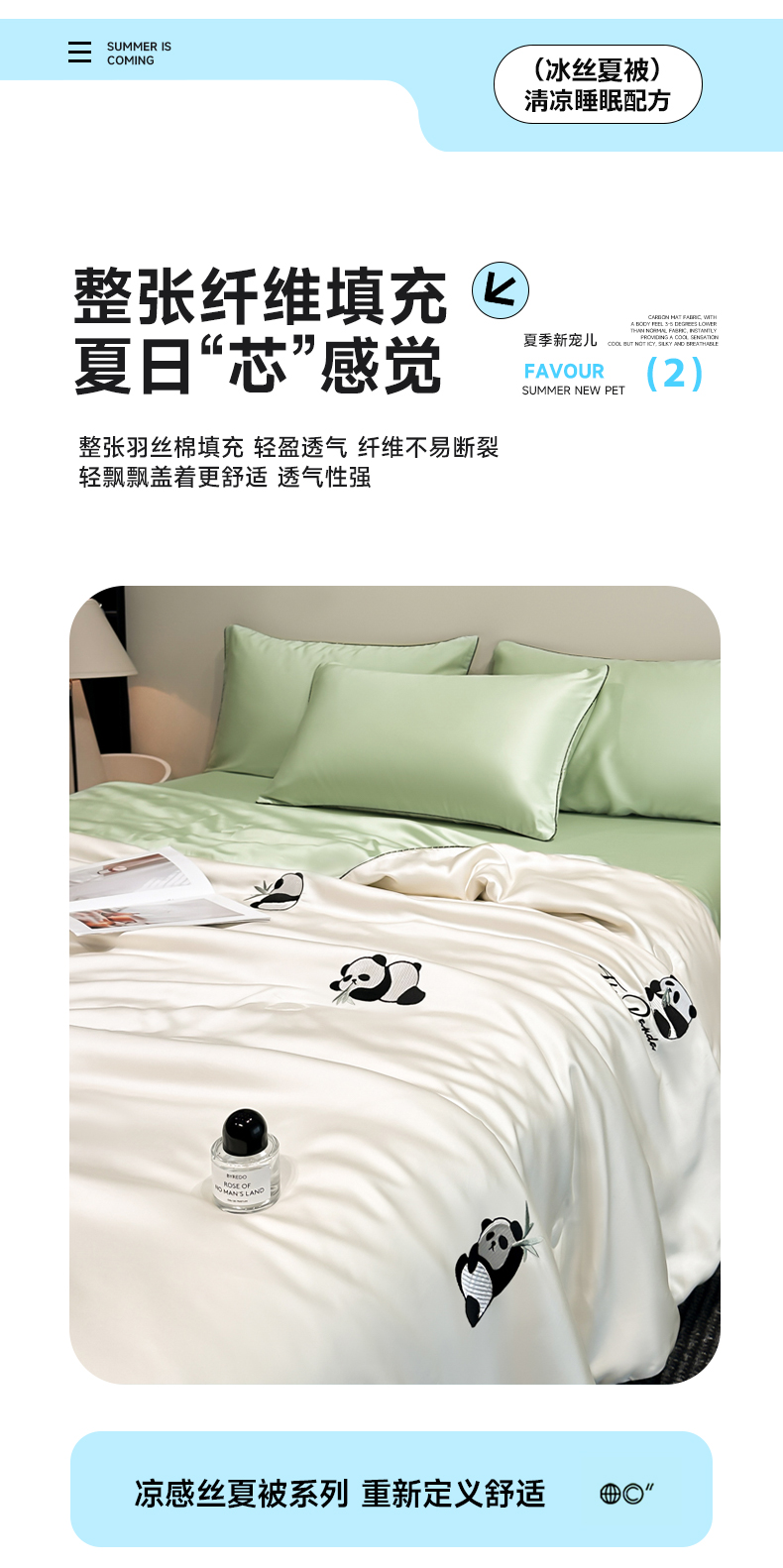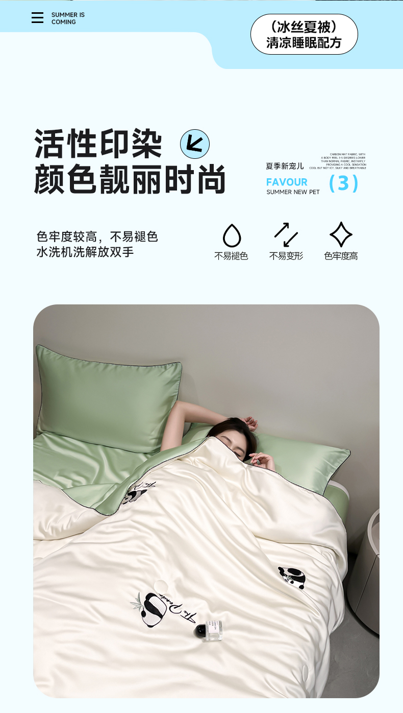 当前位置: 91家纺网 > 商品网购 > 床品套件 > 四件套 > 夏被四件套 > 鑫顺欣 2025新款水洗冰丝刺绣麻绳系列凉感夏被四件套夏凉被 熊猫抱竹-奶白绿
