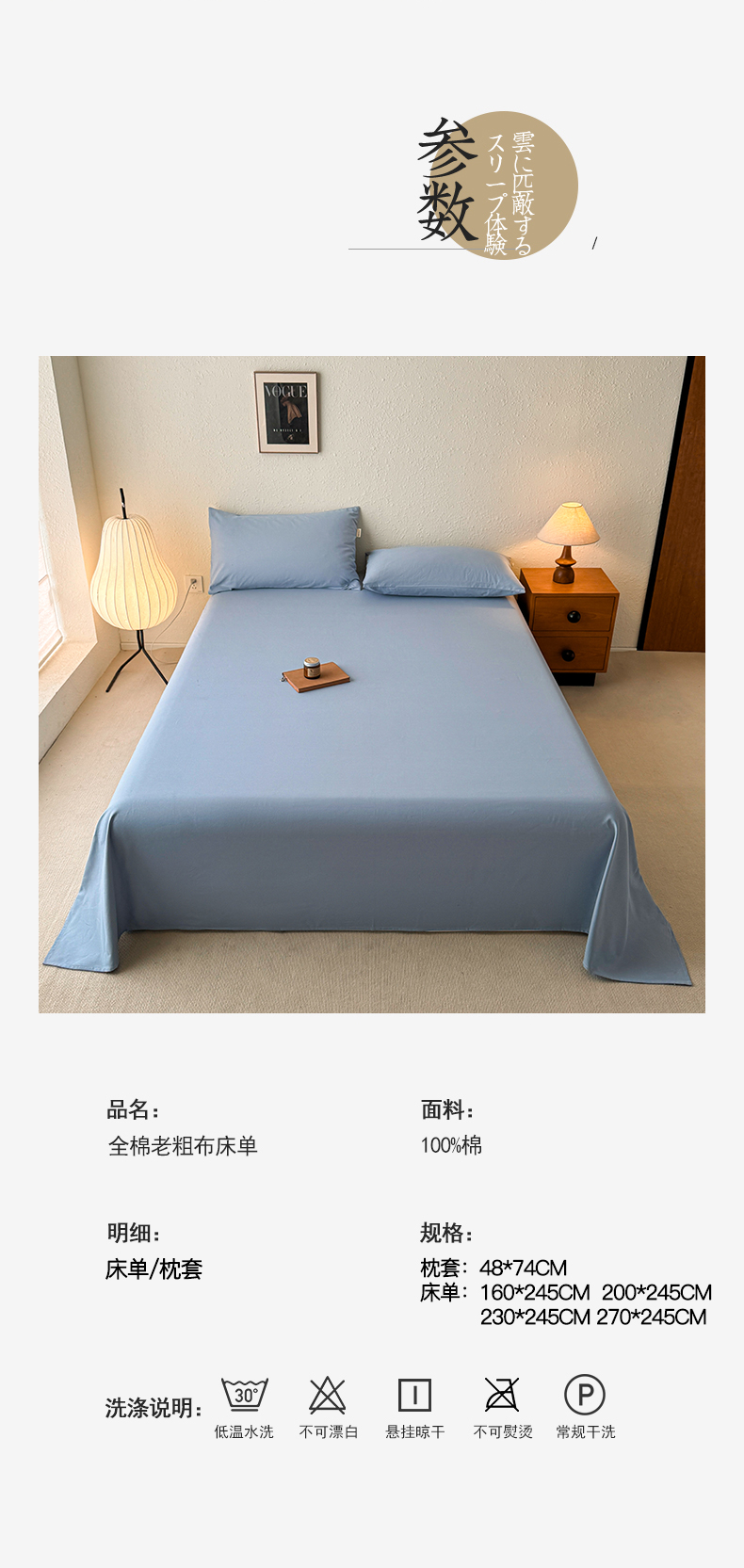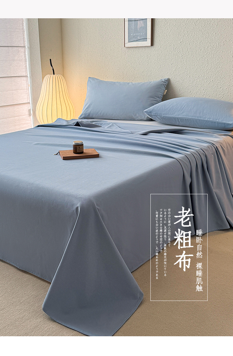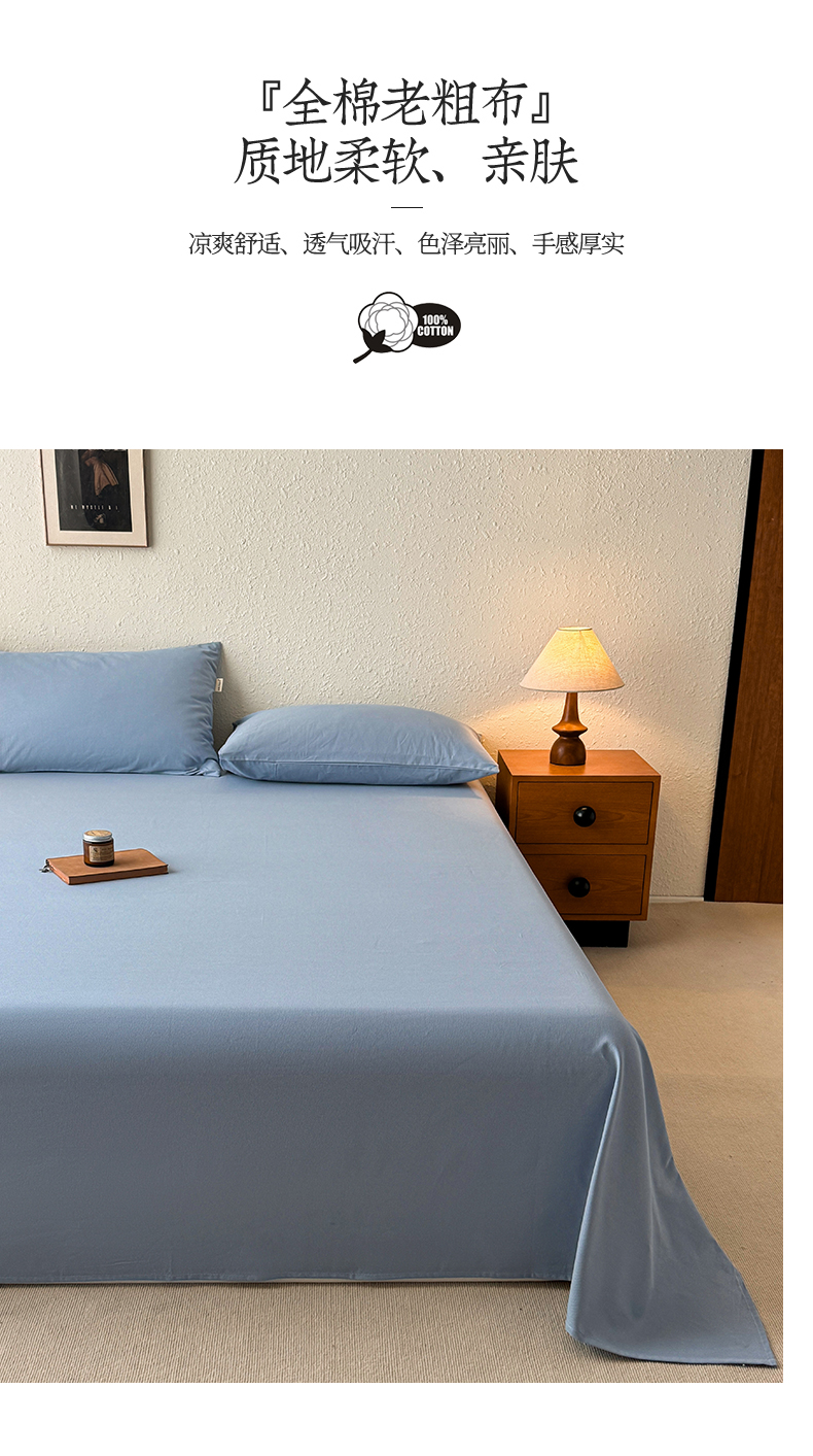 (提供买家秀 爆款花型 不断货)2025新款全棉纯色老粗布单床单 烟蓝