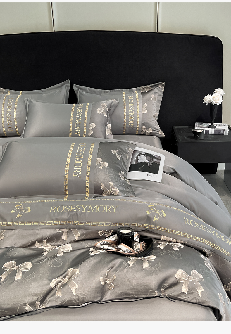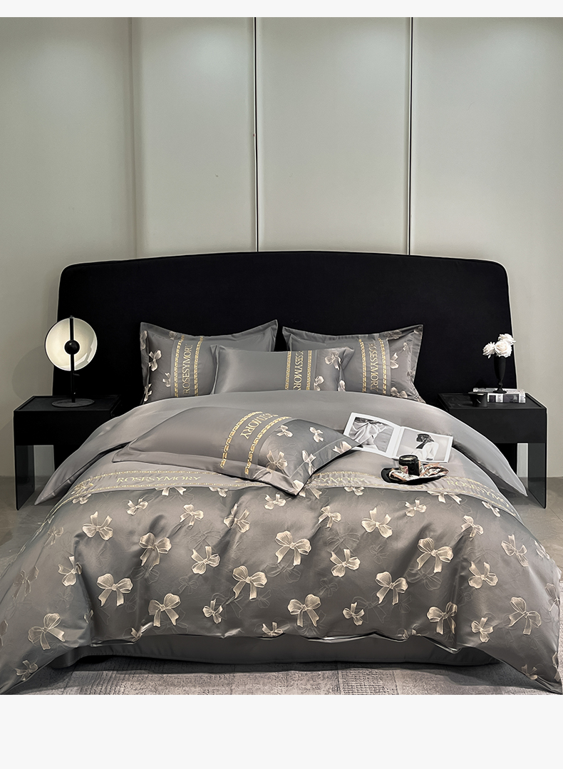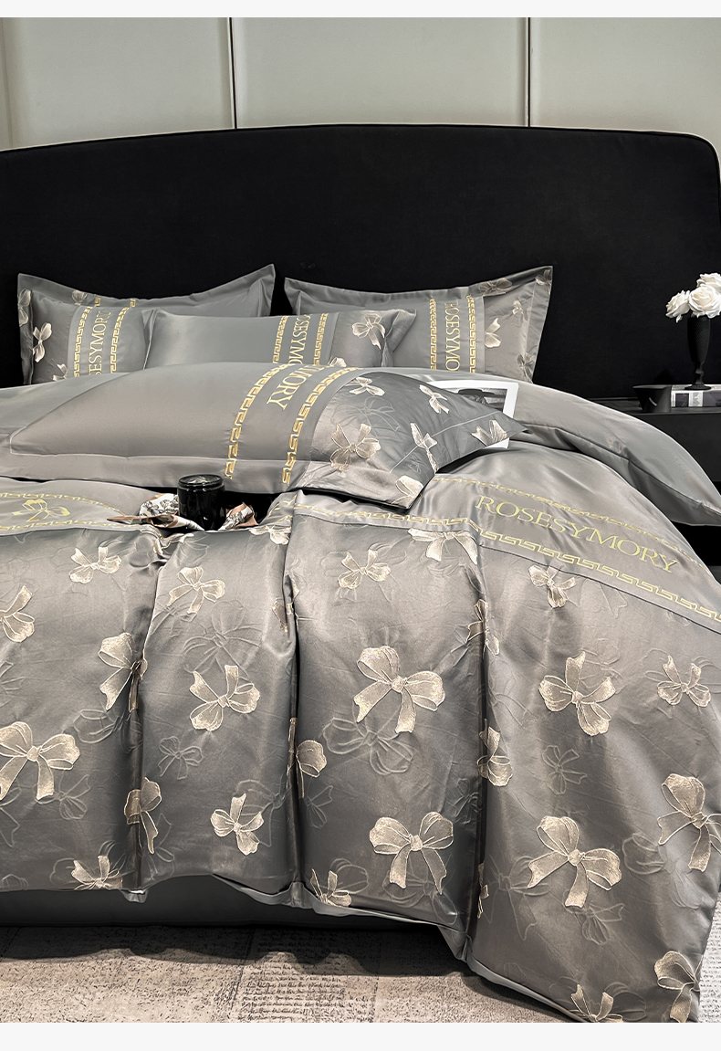 米彩家纺 2025新款A类水洗真丝金丝浮雕提花绣花四件套 情结-深灰