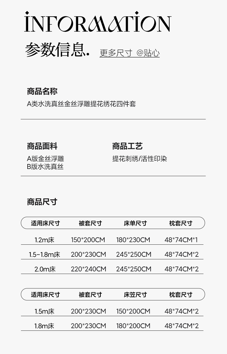 (总)米彩家纺 2025新款A类水洗真丝亮光浮雕花边四件套,粉香槟,粉玉,奶昔白,浅灰,天兰