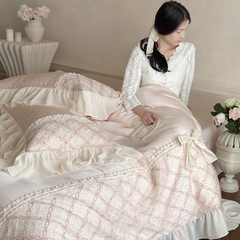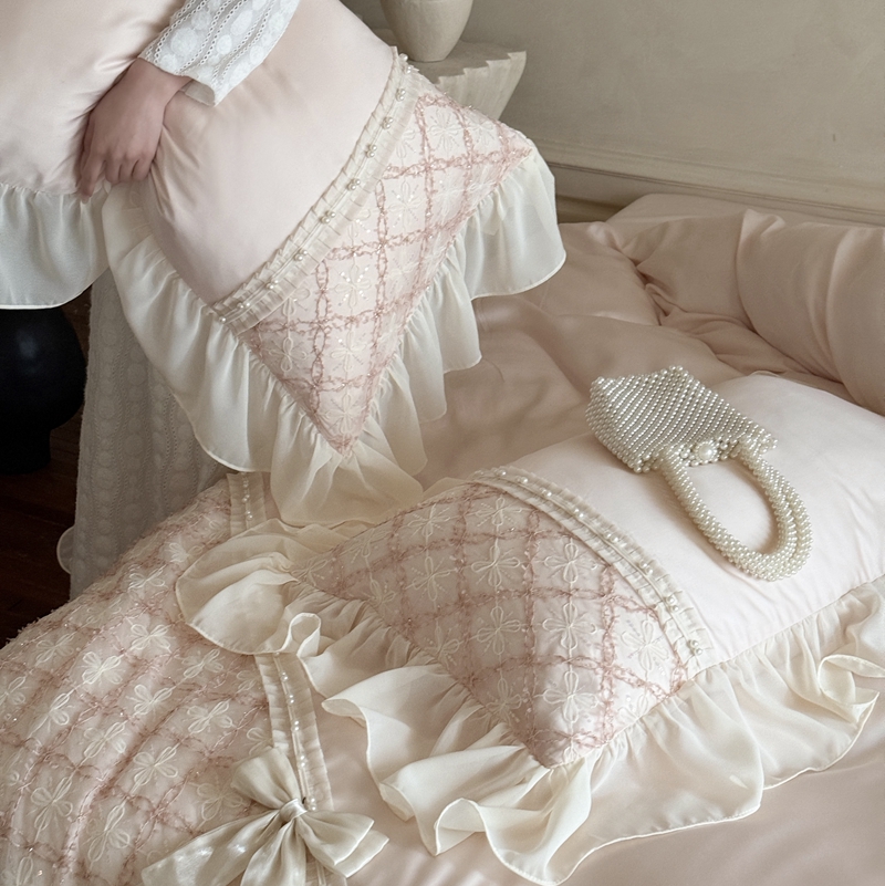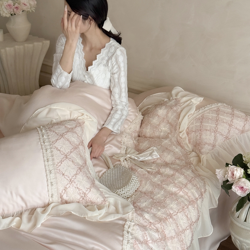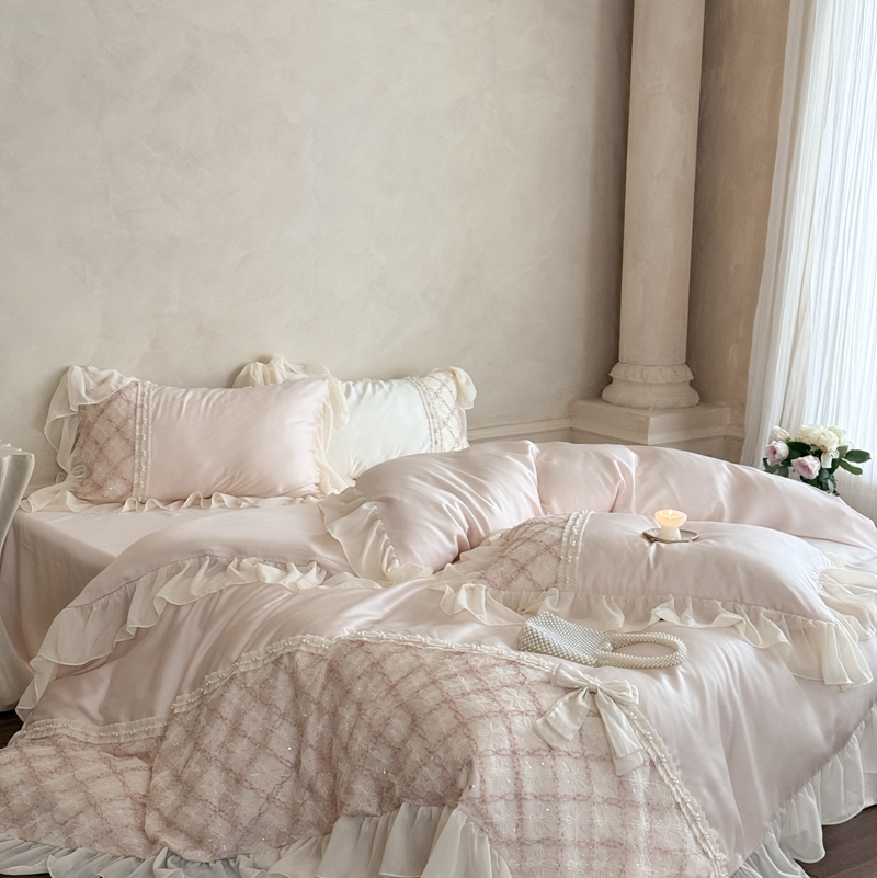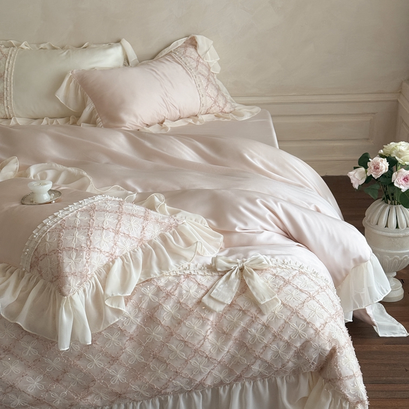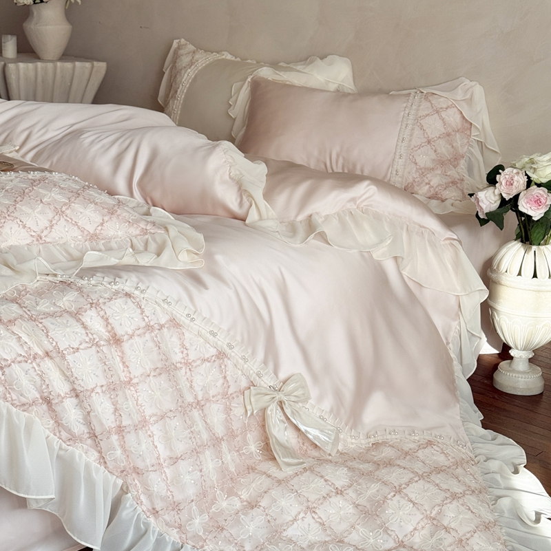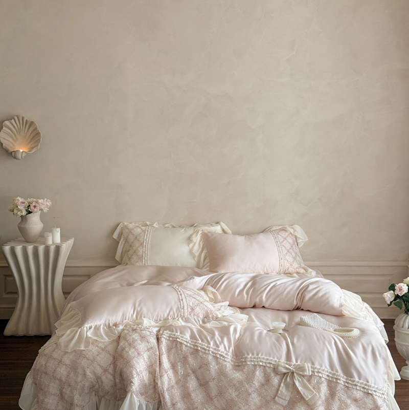 (总)佳汐蓝家纺2025春夏新品60支兰精天丝珍珠织带蝴蝶结四件套--爱莎系列