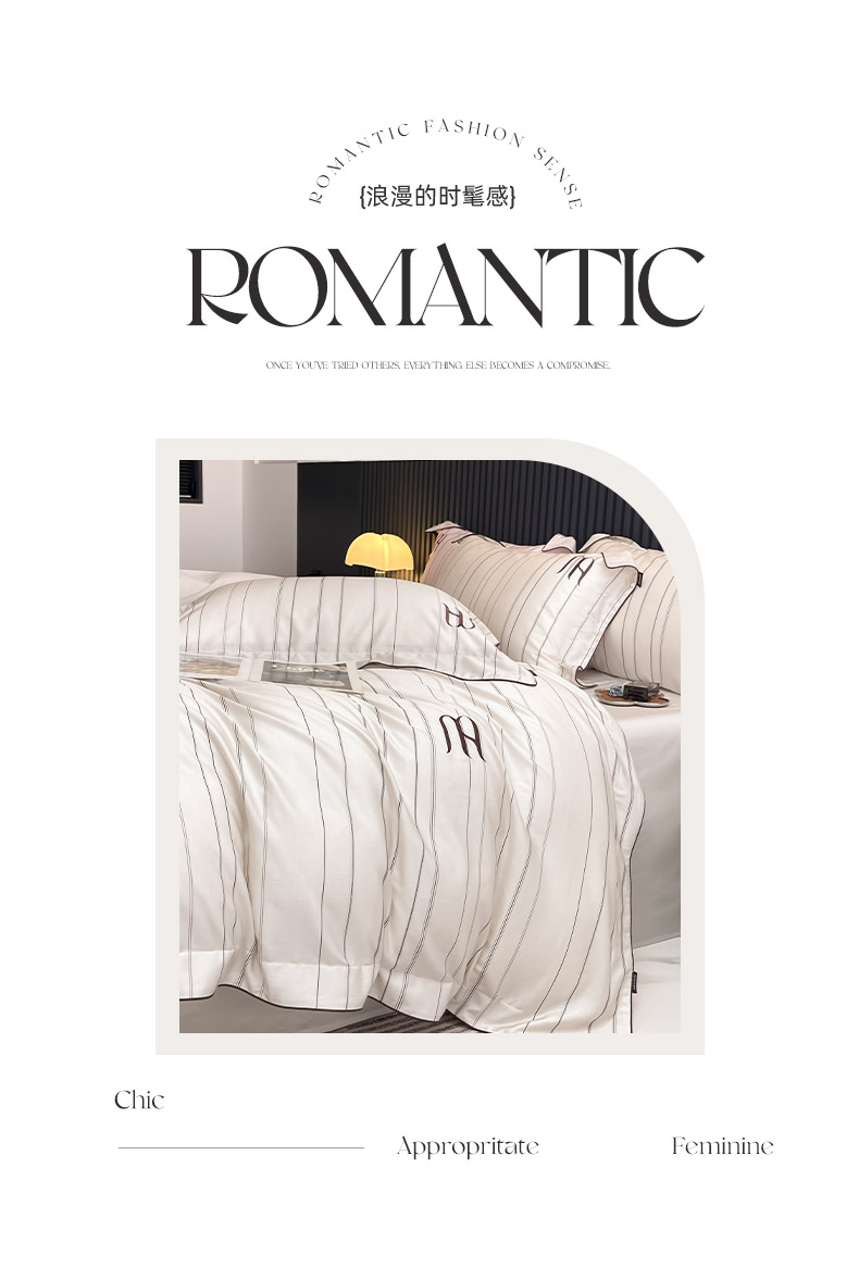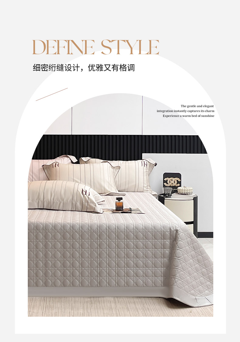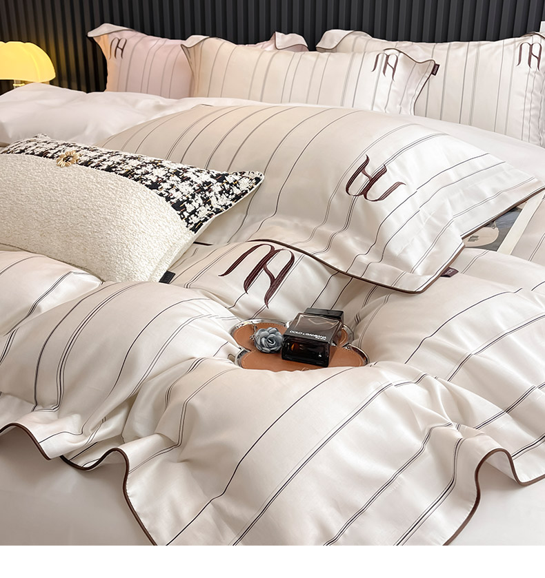商品名称:2025夏季A类天丝棉夹棉床盖床笠四件套全棉纯棉纯色长绒棉真丝保护罩高级感条纹床上用品 艾诺-米