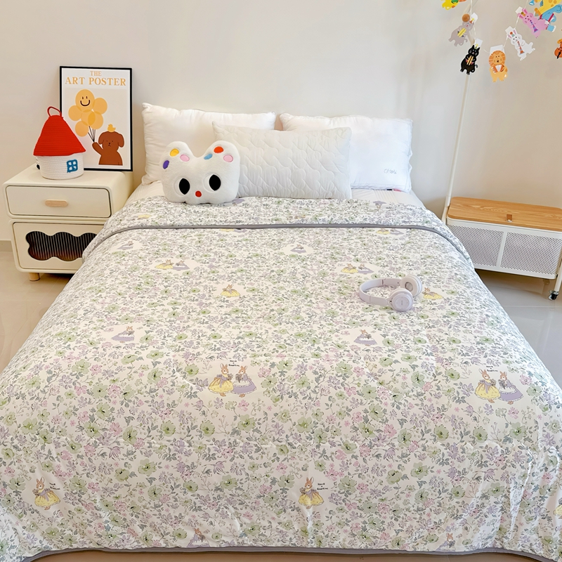 商品名称:兜米 2025夏季A类针织棉夏凉被小清新卡通双面针织棉空调被子被芯 花园兔