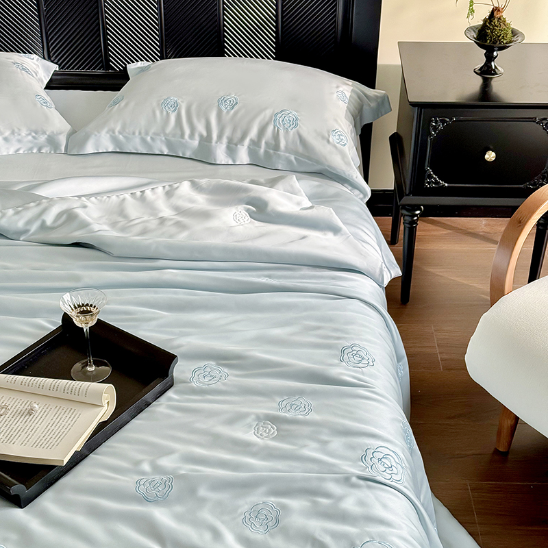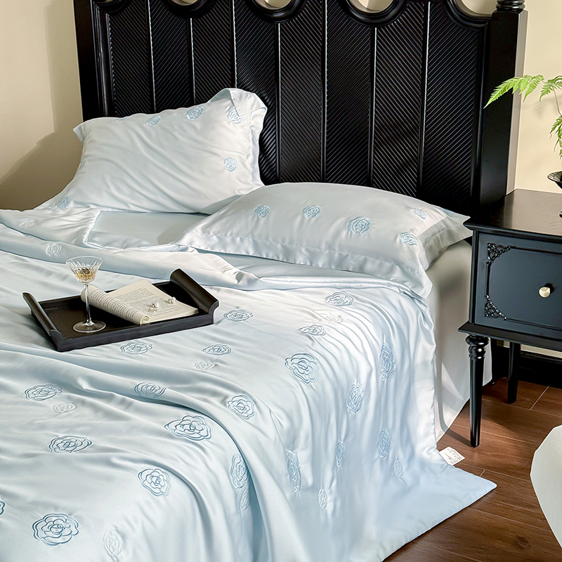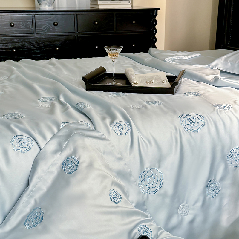 当前位置: 91家纺网 > 商品网购 > 床品套件 > 四件套 > 莱赛尔四件套 > 佳汐蓝家纺 2025新款60S奥地利LF兰精天丝刺绣夏被四件套-lady coco lady coco夏被-蓝