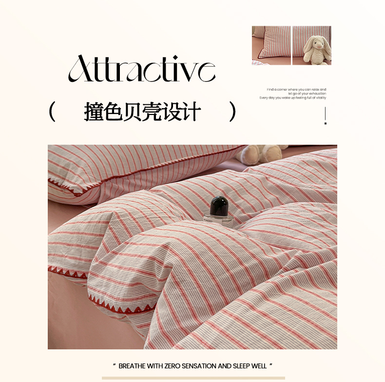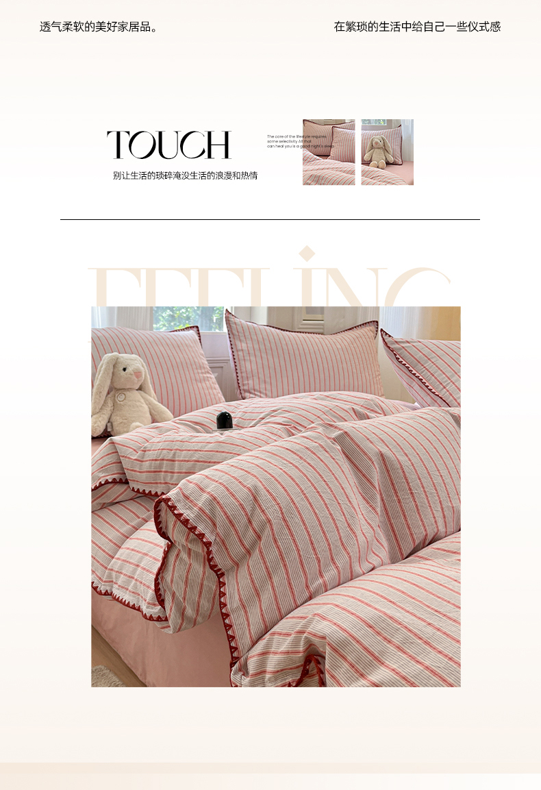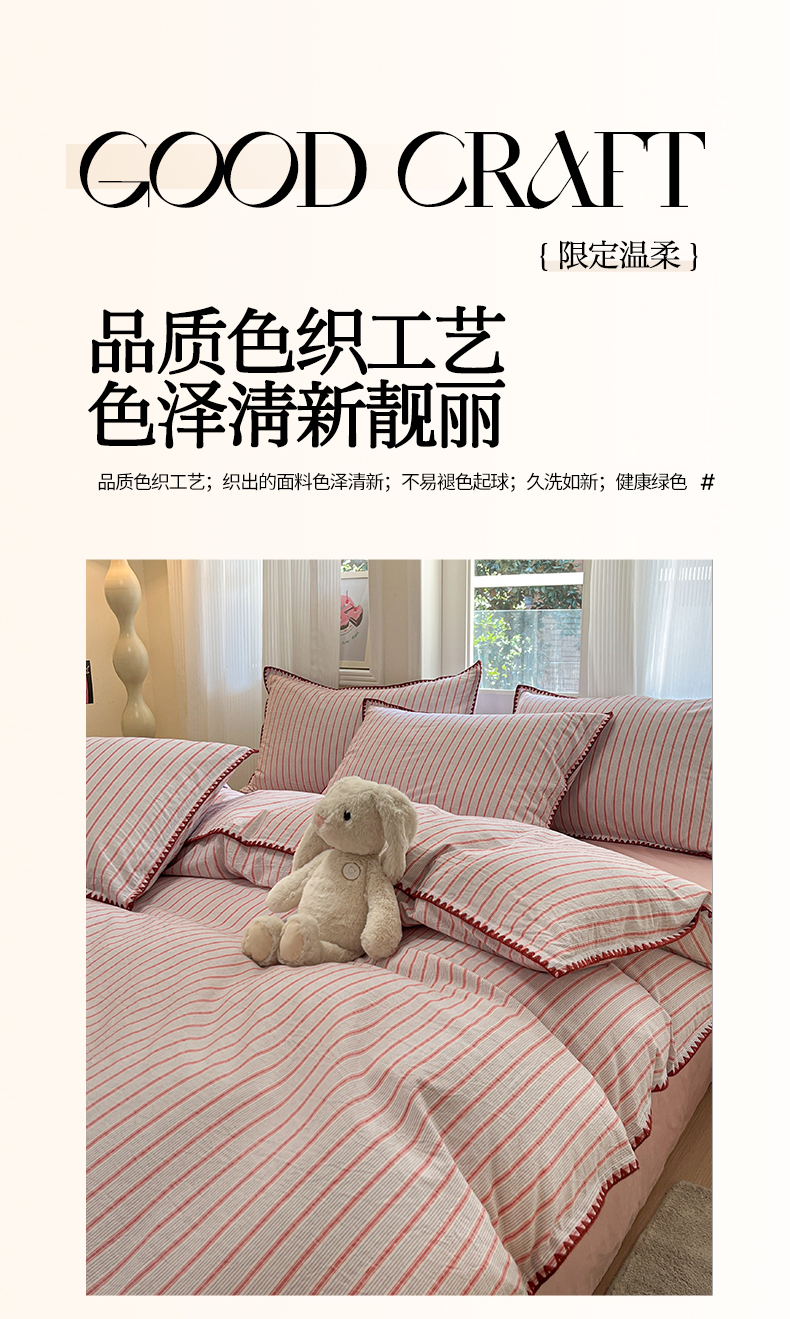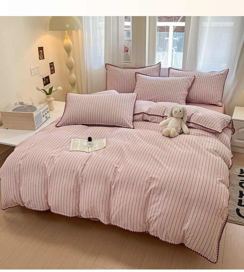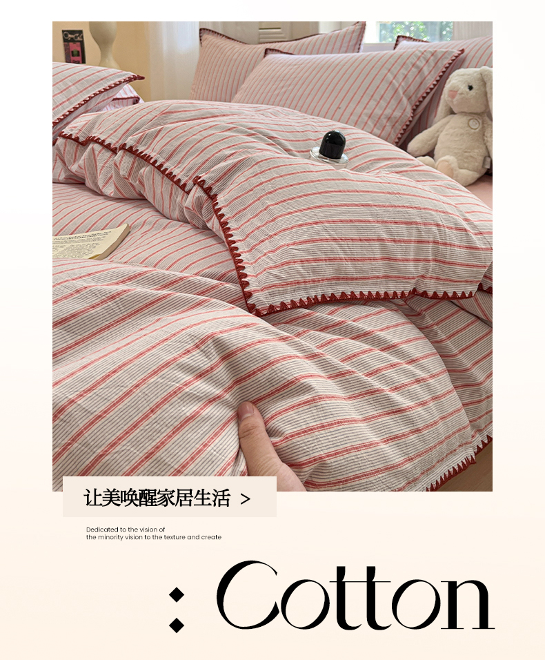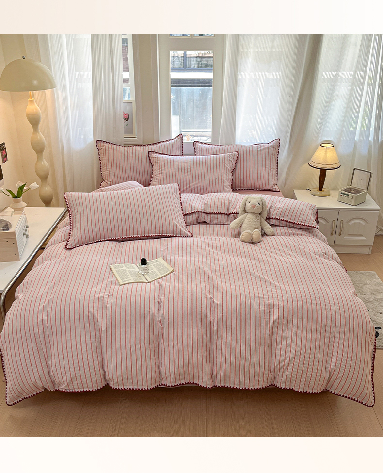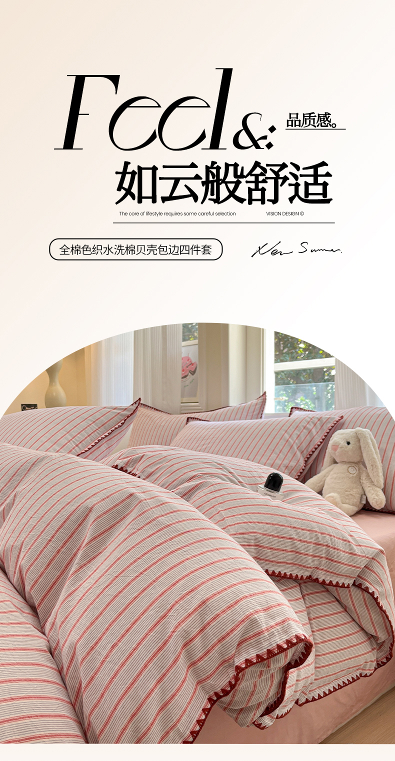 当前位置: 91家纺网 > 商品网购 > 床品套件 > 四件套 > 全棉活性四件套 > 莱茵家居 2025新款全棉色织水洗棉贝壳包边四件套生椰系列 草莓奶露