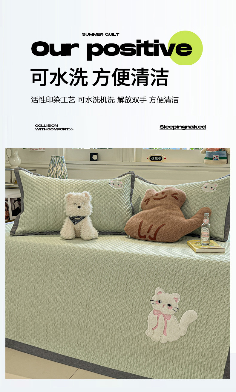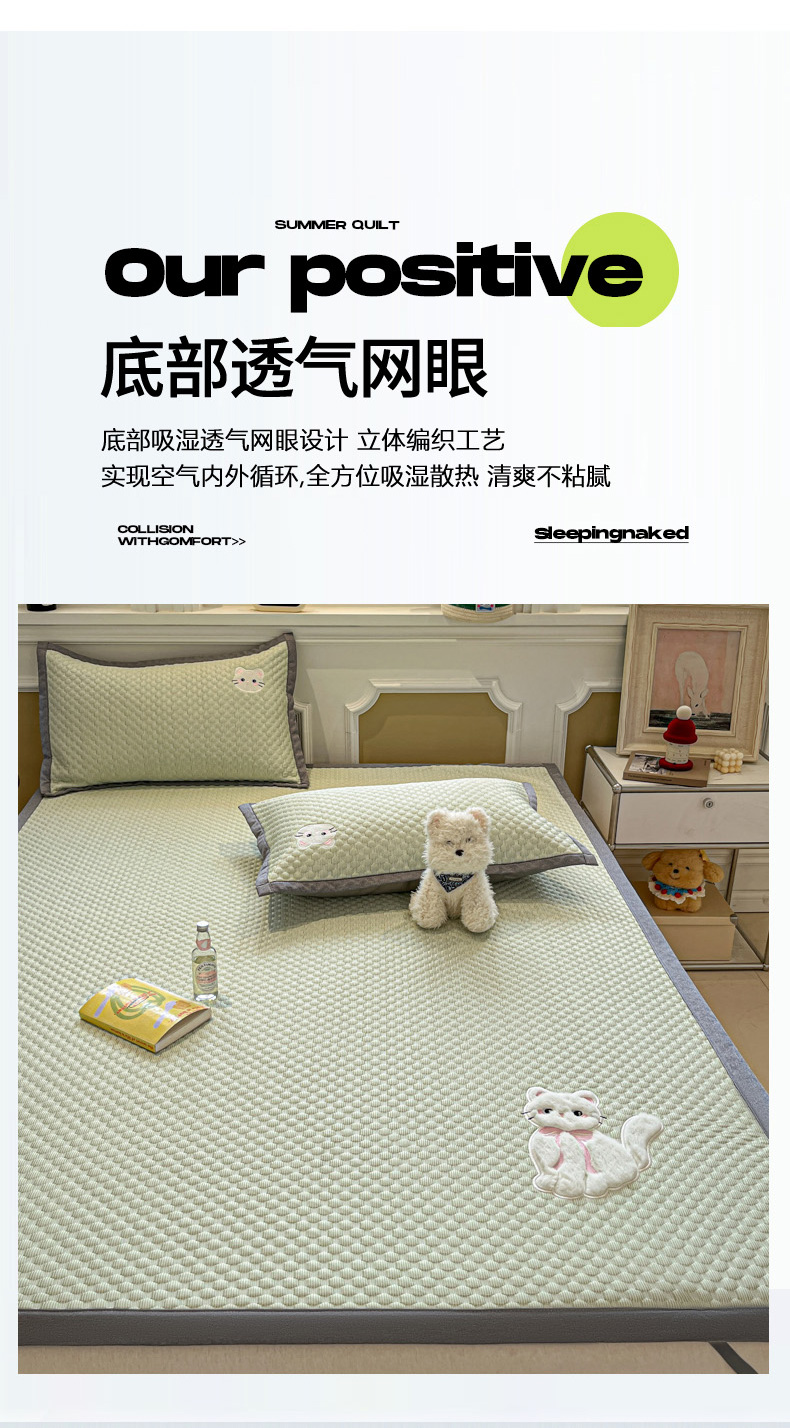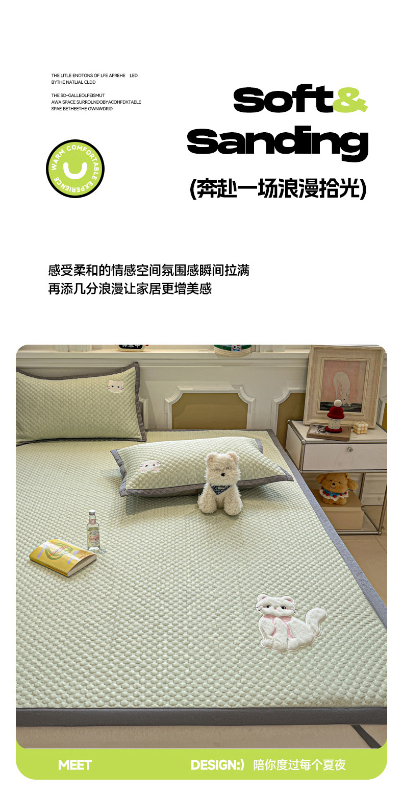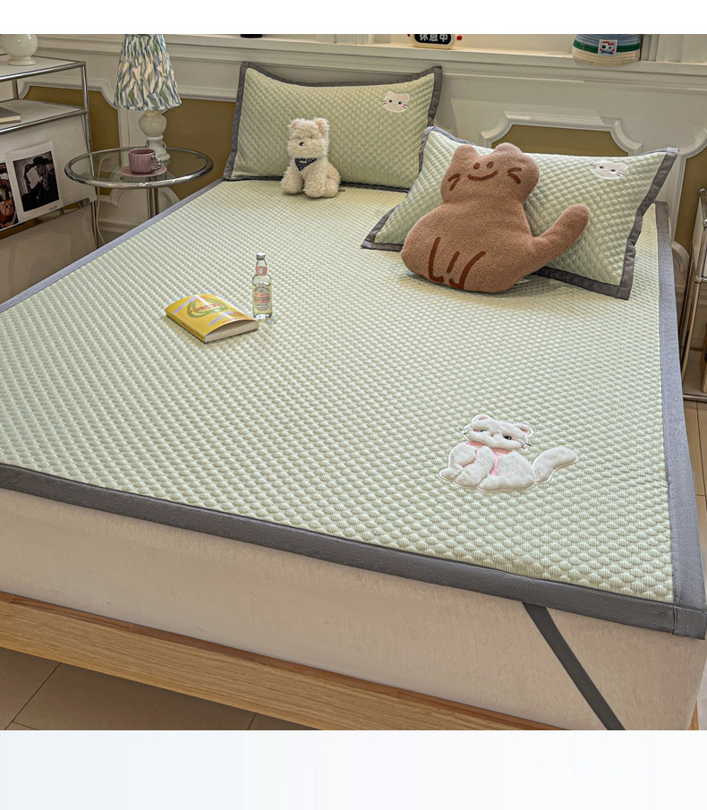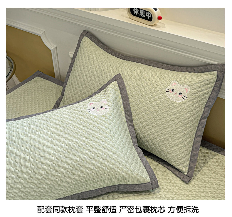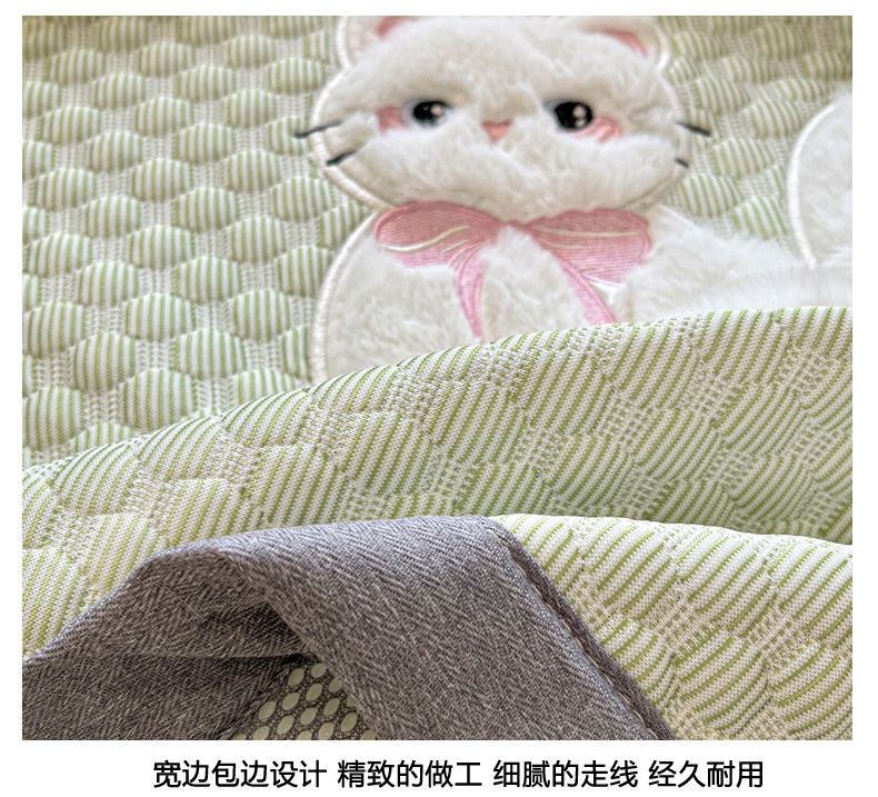 商品名称:沐慕 2025新款绣花凉感淑女喵豆豆凉席 淑女喵-草绿