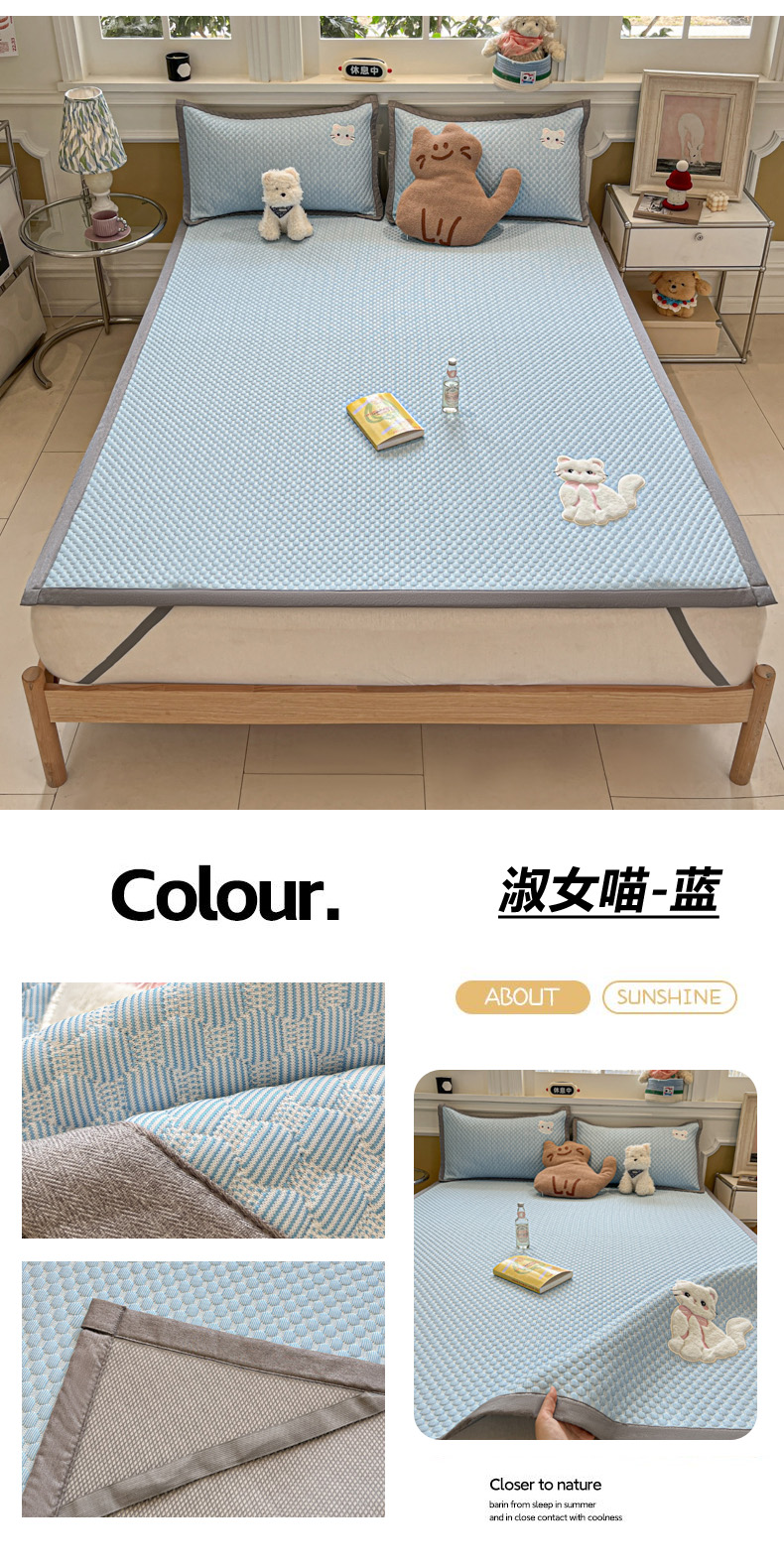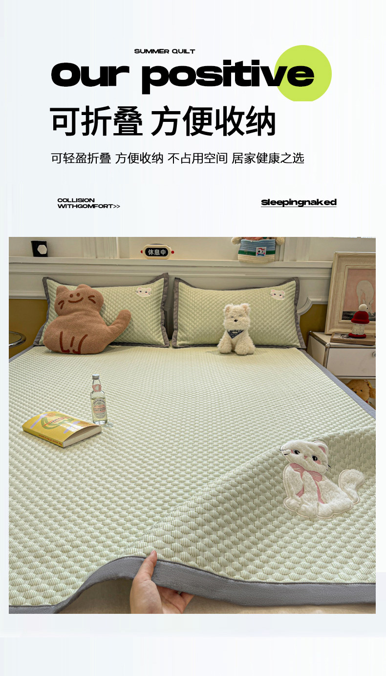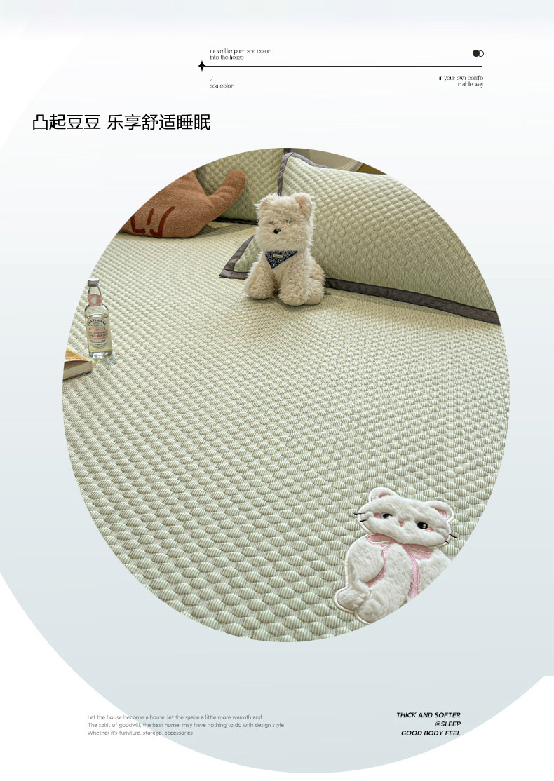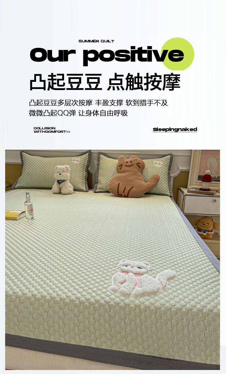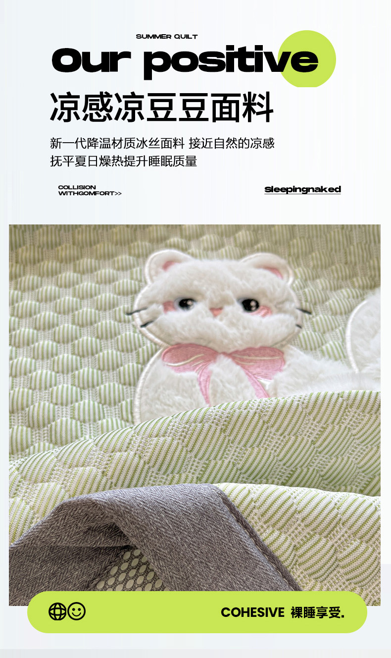 商品名称:沐慕 2025新款绣花凉感淑女喵豆豆凉席 淑女喵-草绿