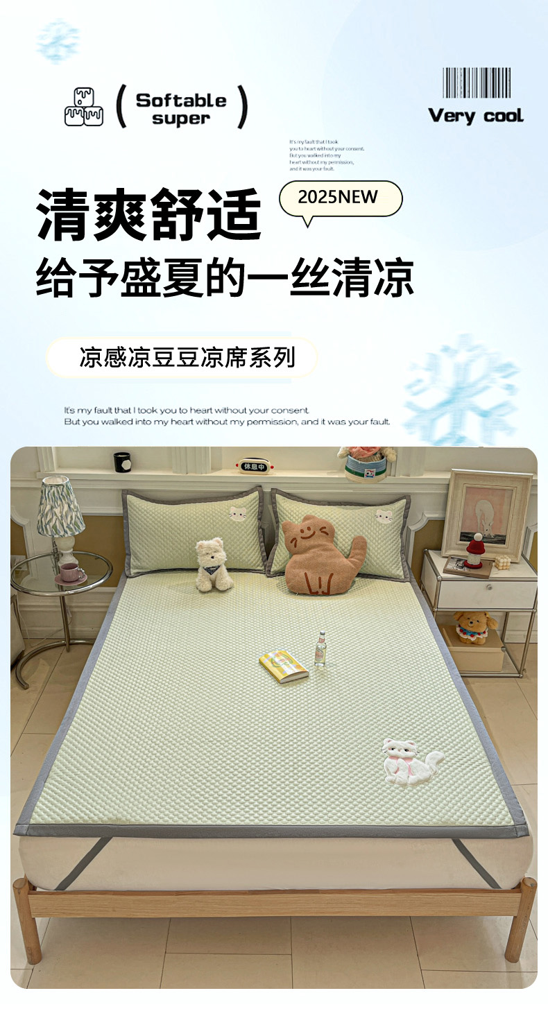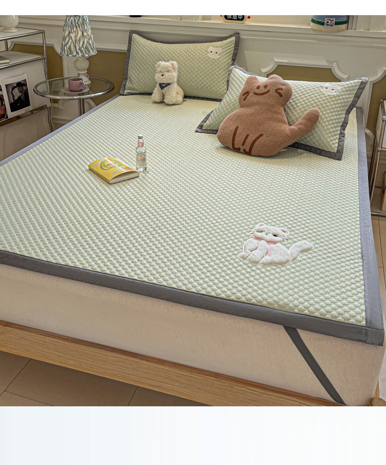 沐慕 2025新款绣花凉感淑女喵豆豆凉席 淑女喵-草绿