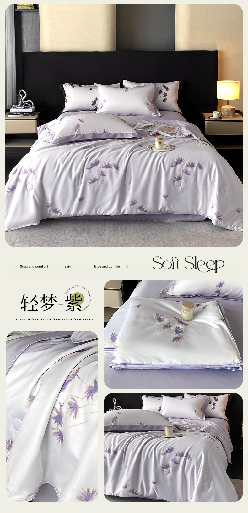 当前位置: 91家纺网 > 商品网购 > 床品套件 > 四件套 > 夏被四件套 > 优悦生活馆 2025新款顺滑冰丝夏被四件套-轻梦轻语 轻梦-紫