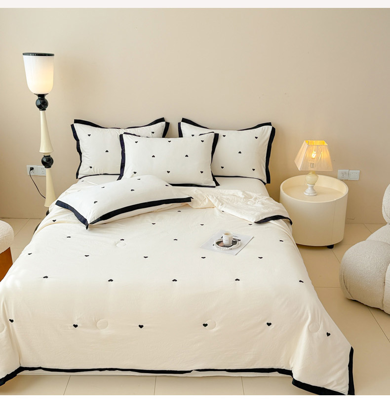 商品名称:米可 2025新款A类刺绣云朵棉夏被四件套 波点-白