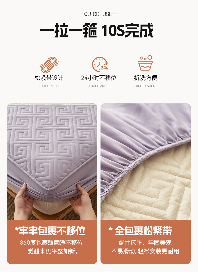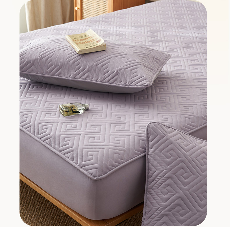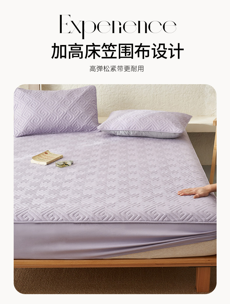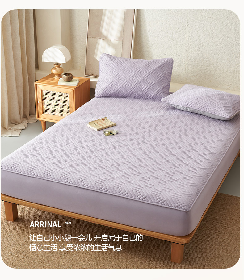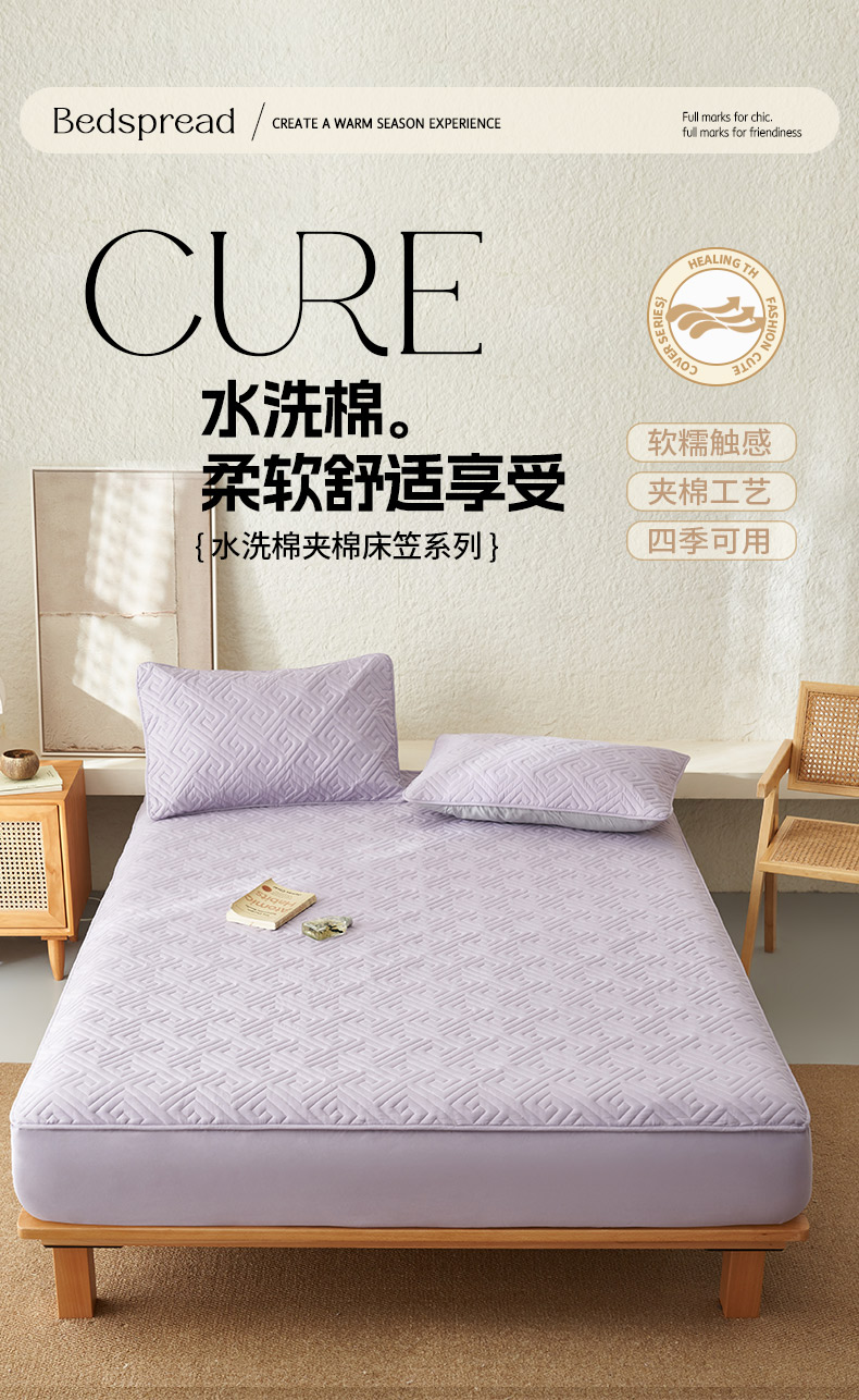 商品名称:鑫琪莱家纺 2026新款水洗棉绗绣夹棉床笠 夹棉床笠-烟熏紫