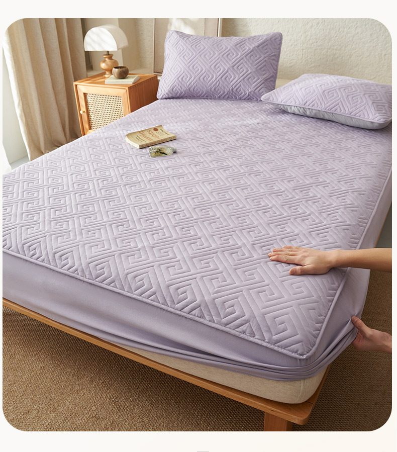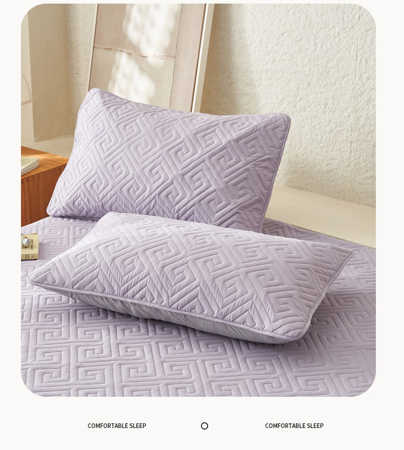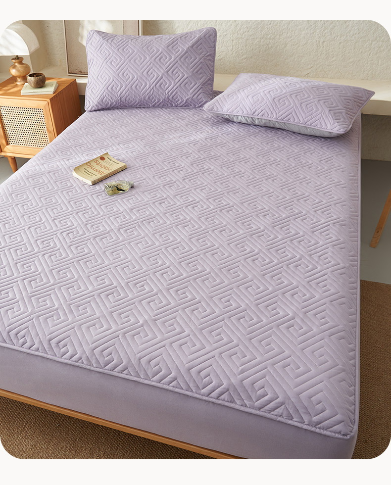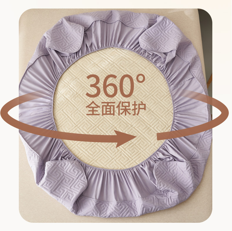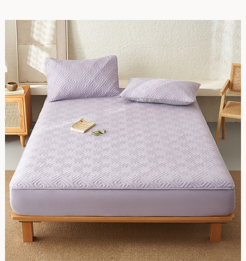 商品名称:鑫琪莱家纺 2026新款水洗棉绗绣夹棉床笠 夹棉床笠-烟熏紫