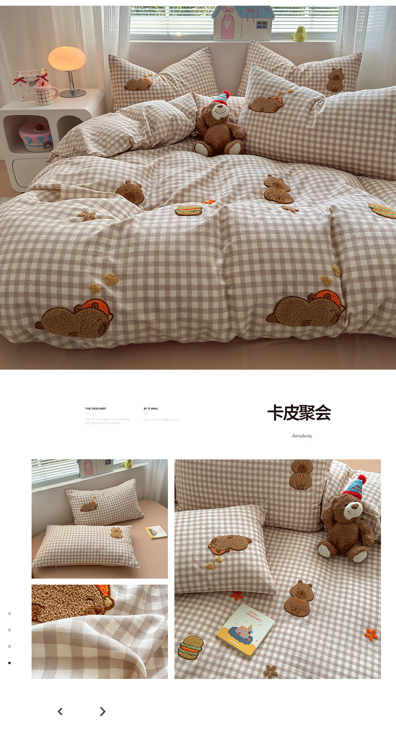 (总)如意朵 2025新款全棉纯棉提花水洗棉绣花四件套(专版花型),开心丫,三只小狗,三只小猫,贪吃卡皮,休闲小猫,抓星熊
