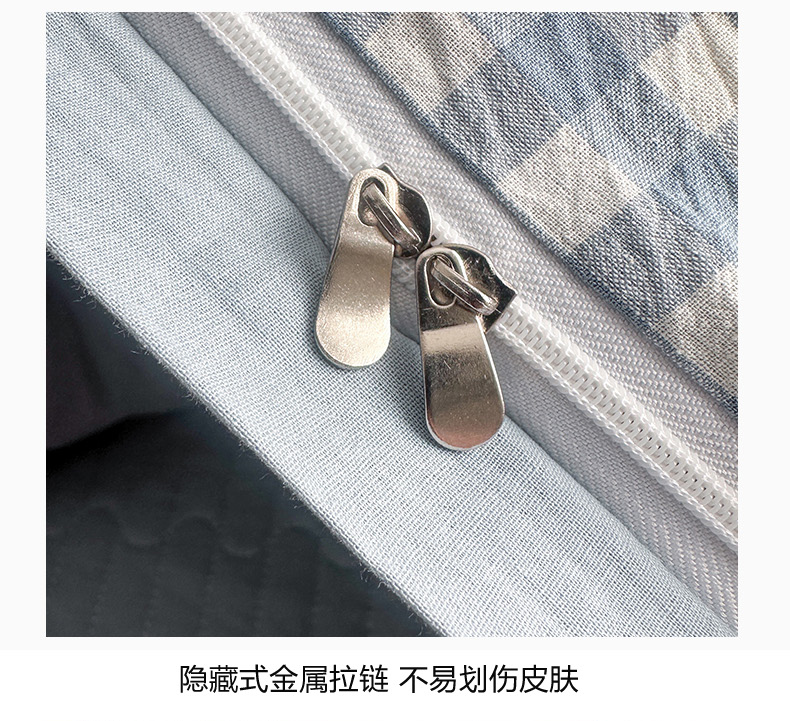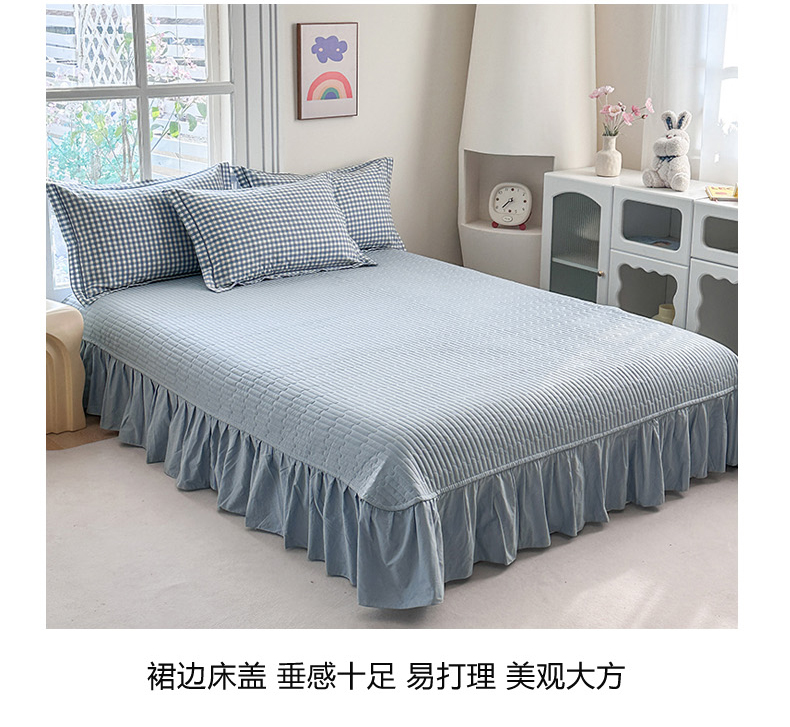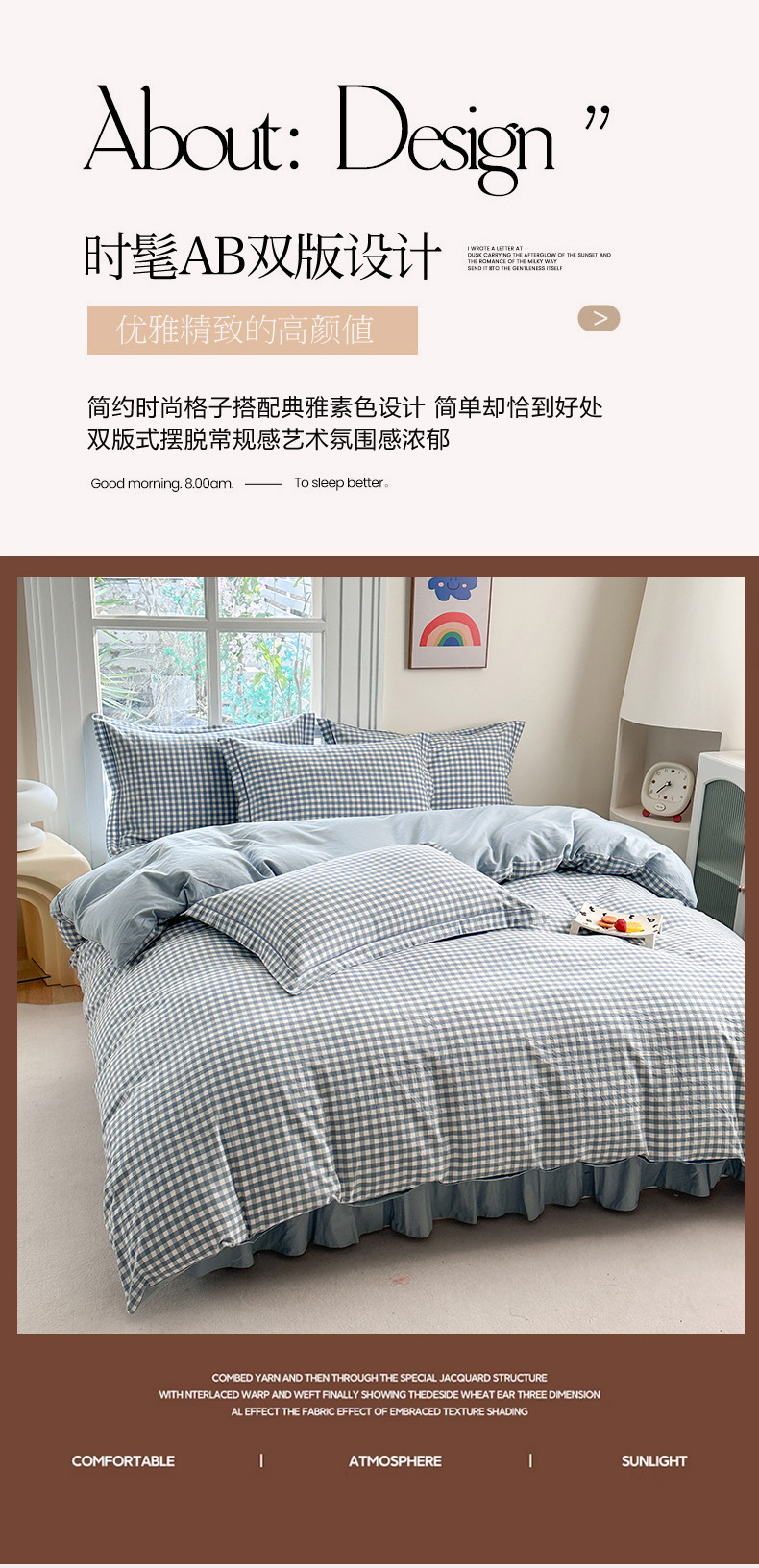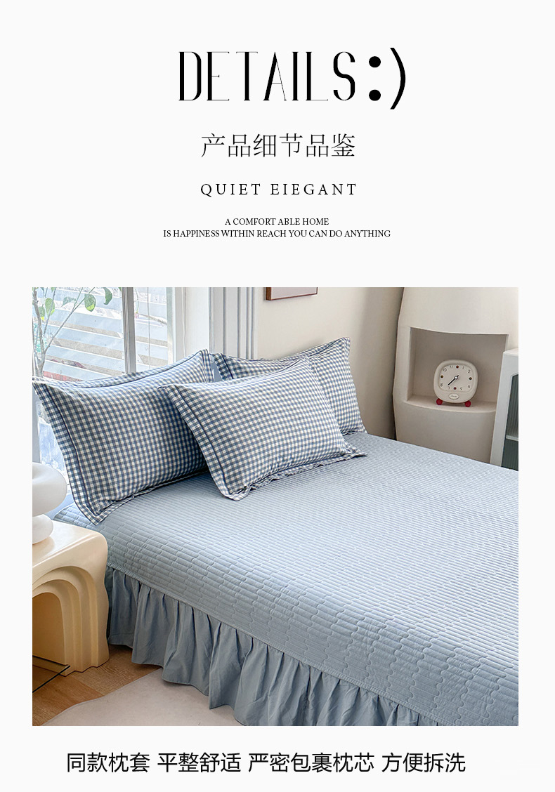 商品名称:金窝窝家纺 2025新款全棉色织水洗棉床盖四件套 浅兰小格