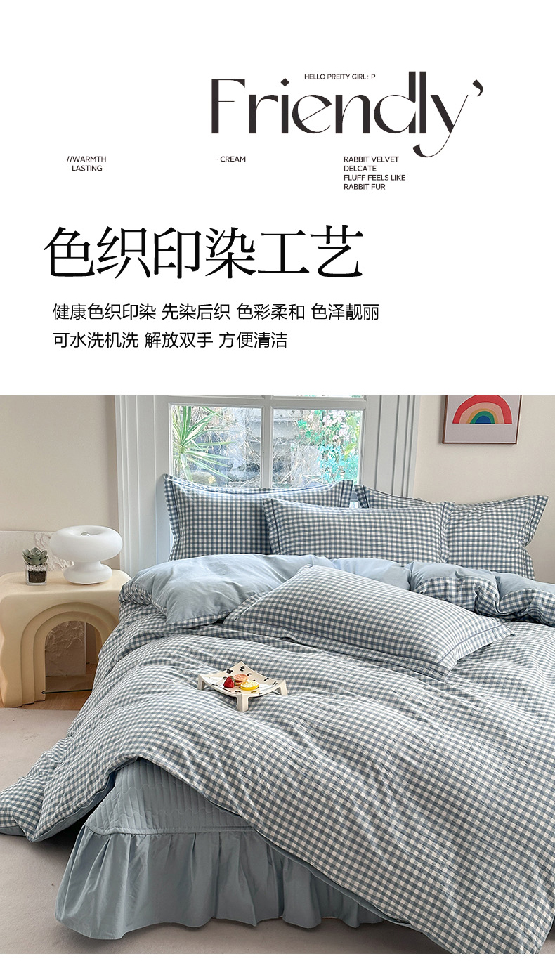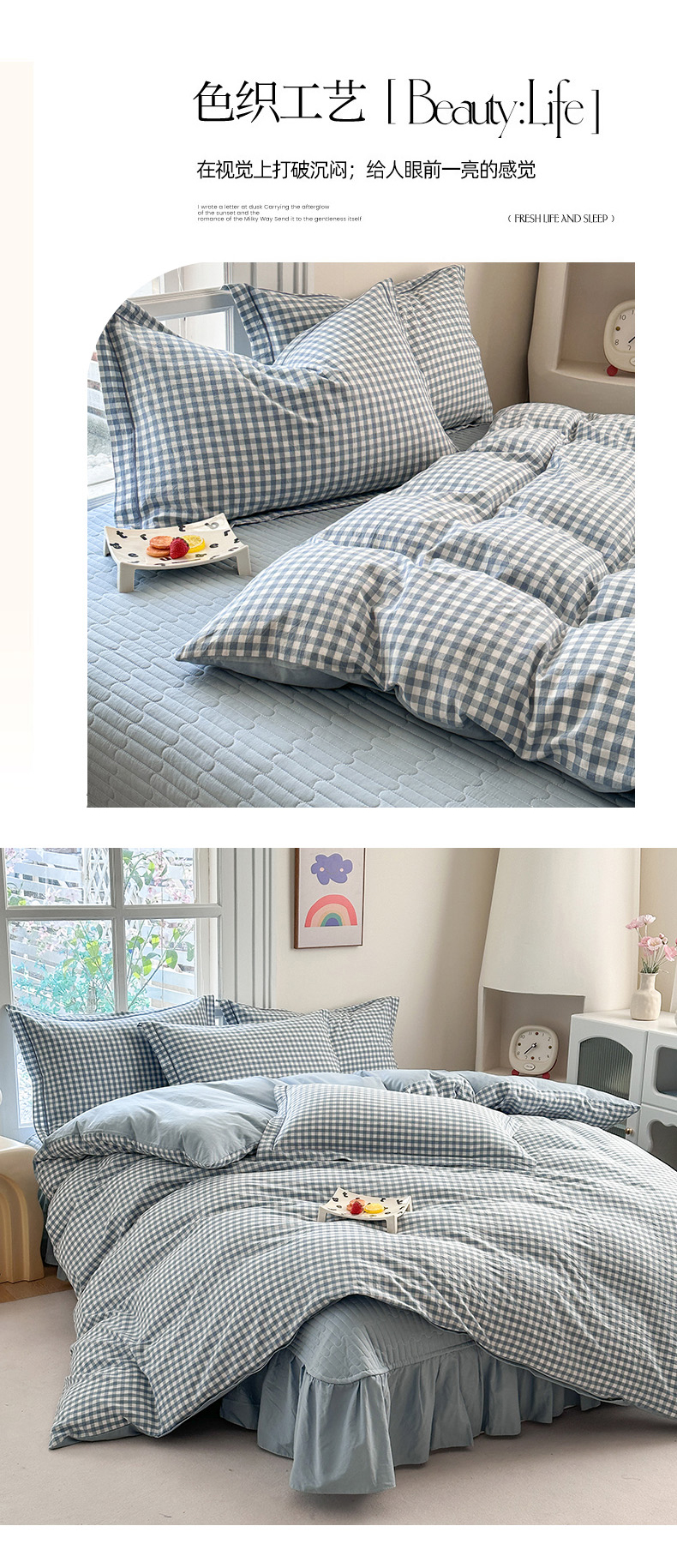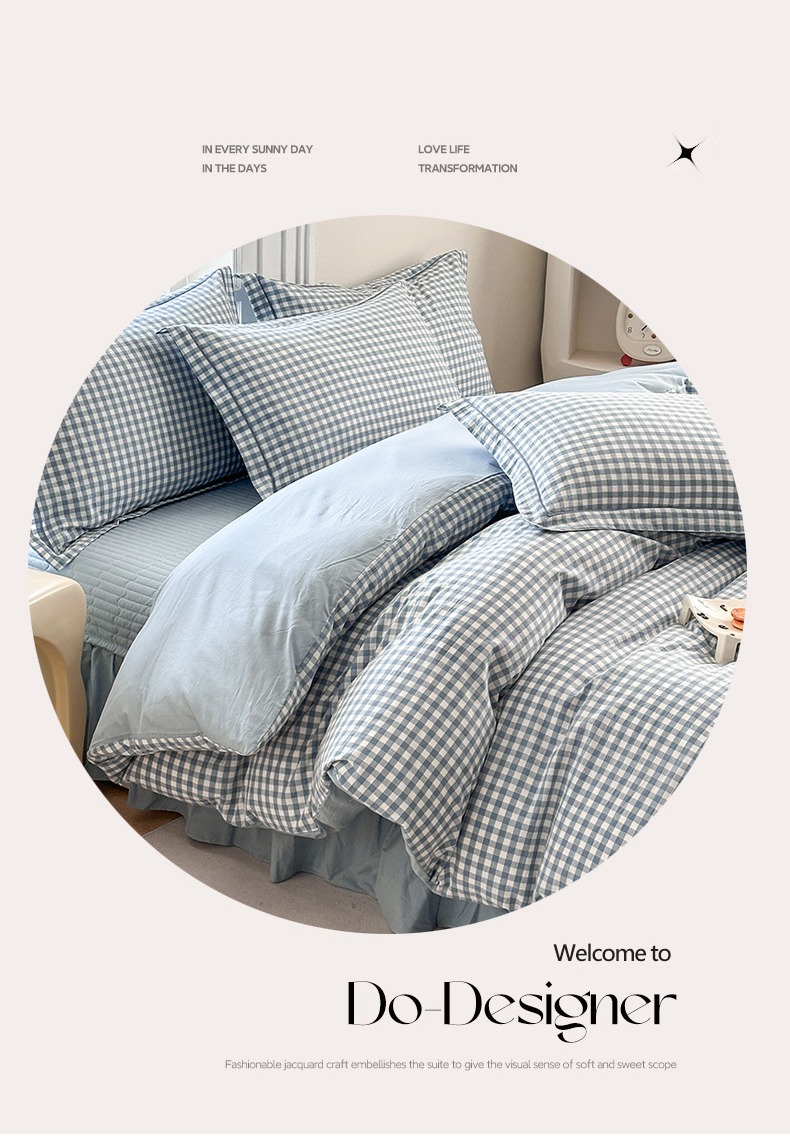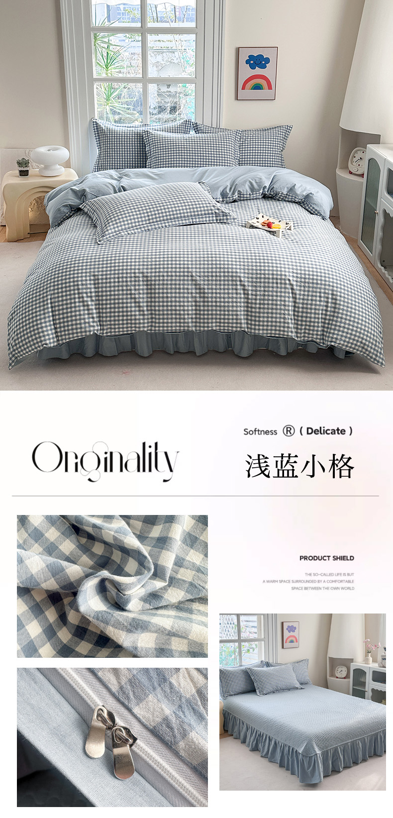 金窝窝家纺 2025新款全棉色织水洗棉床盖四件套 浅兰小格
