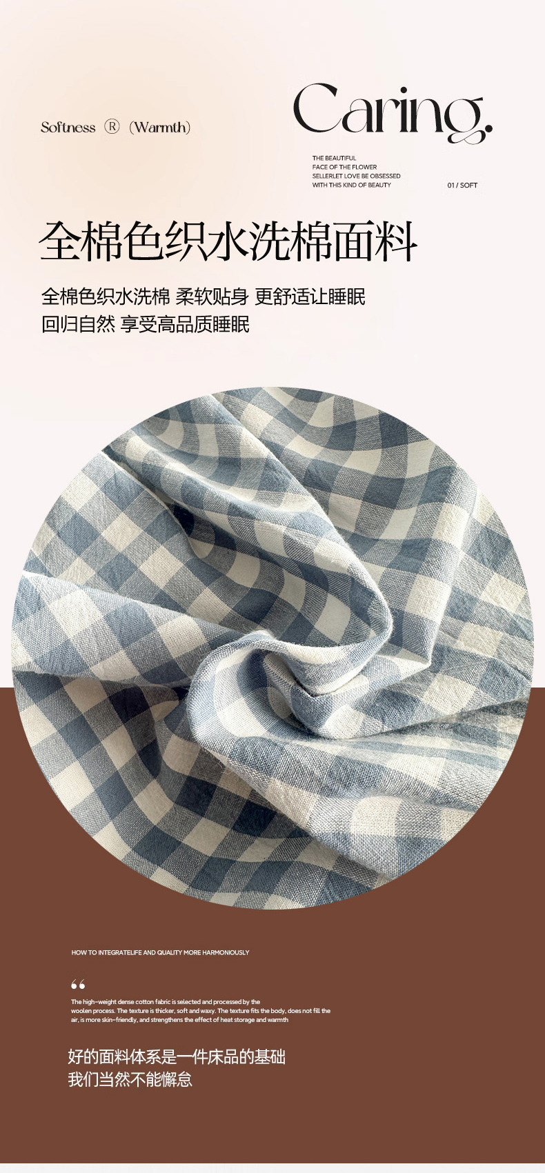 (总)金窝窝家纺 2025新款纯棉水洗棉四件套,爱锦灰,巴黎彩格,巴黎灰,春意盎然淡绿色,大发格粉蓝,大发格绿,多爱多粉,繁星奶咖米格,假日阳光彩格,绿咖时尚格,绿小格,米格,浅蓝小格,三彩格,时尚风蓝灰,相遇兰橙,相遇小粉,意境蓝灰,优雅粉格,优雅橘,优雅兰
