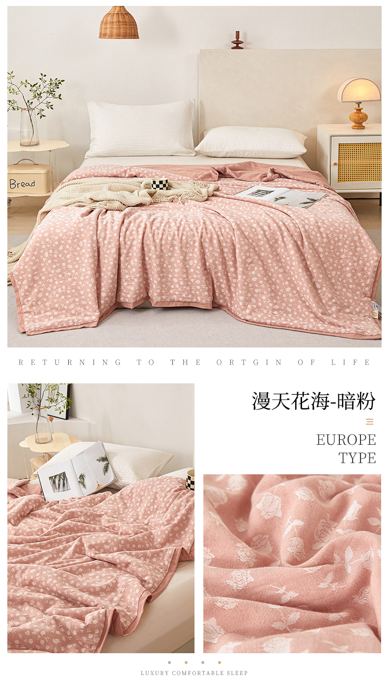瑞米家居 2025新款全棉色织提花夏被 漫天花海-暗粉