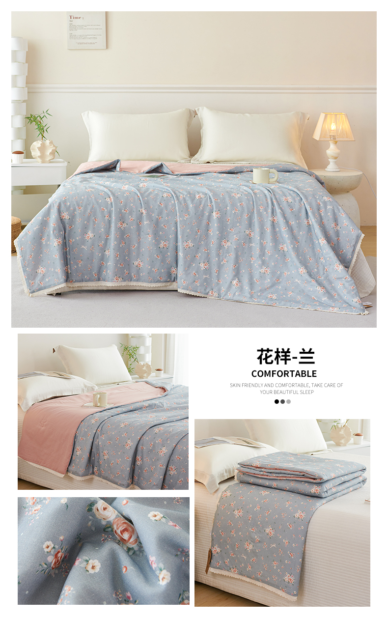商品名称:瑞米家居 2025新款A类全棉双层纱印花夏被 花样-兰
