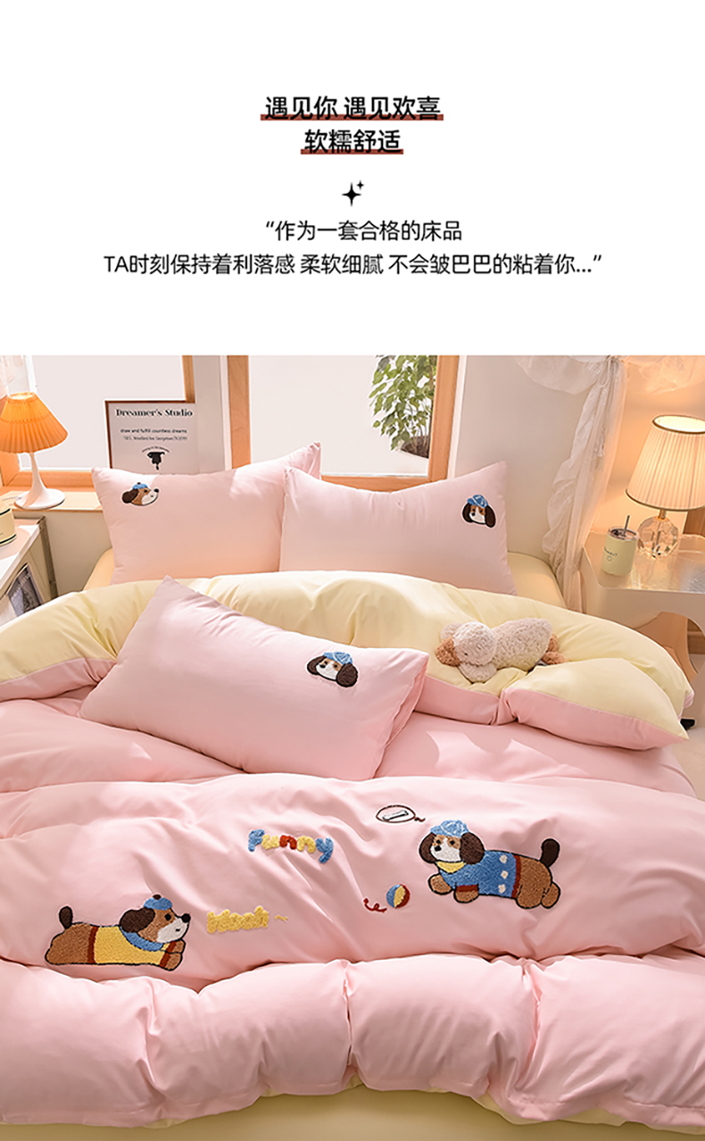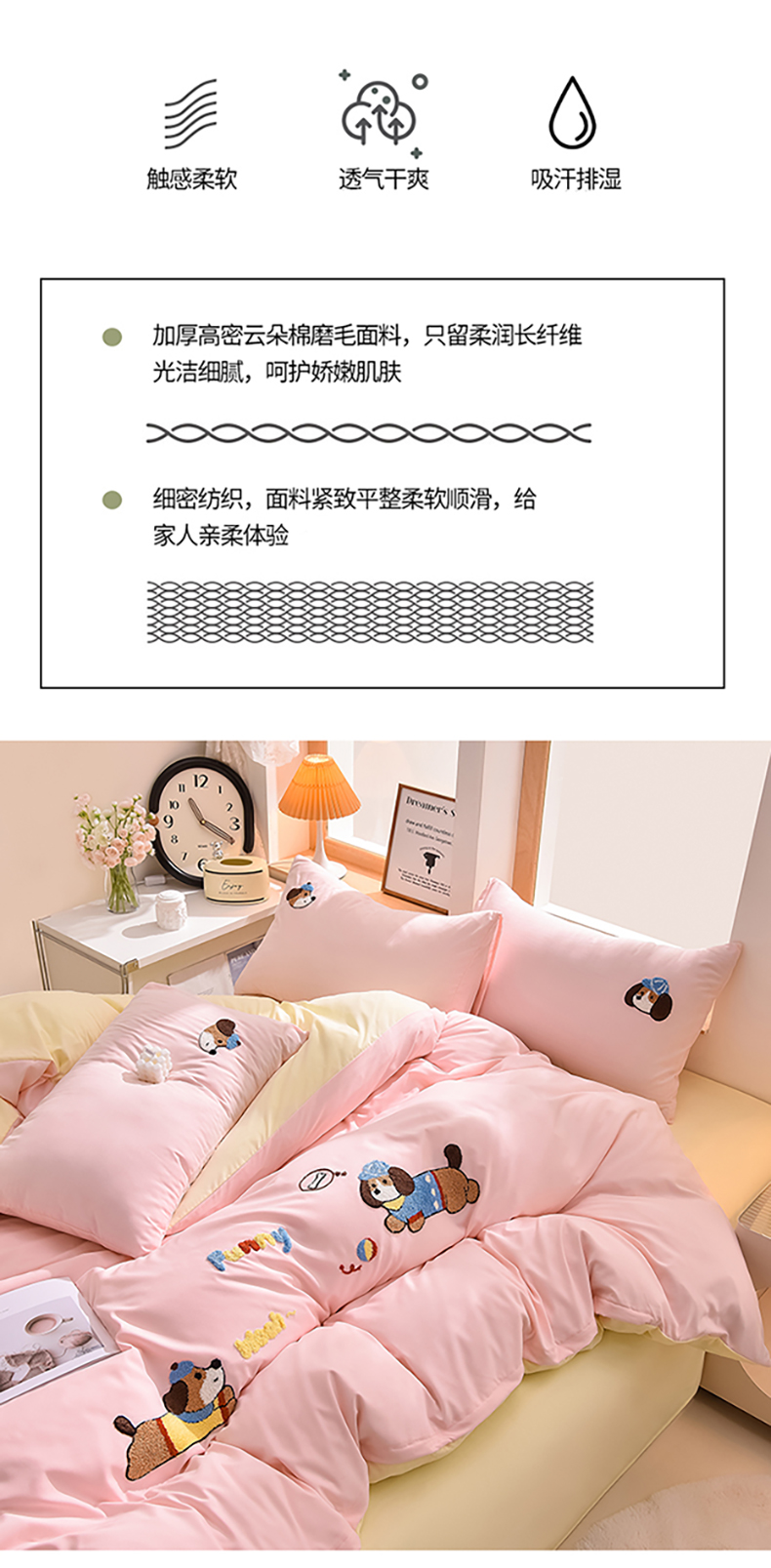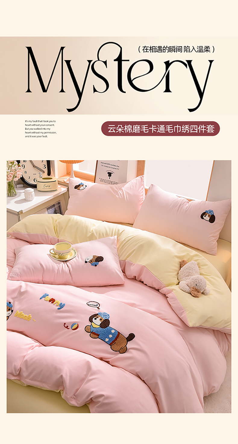 乐窝家纺仓储 2025新款云朵棉毛巾绣磨毛四件套 海绵宝宝