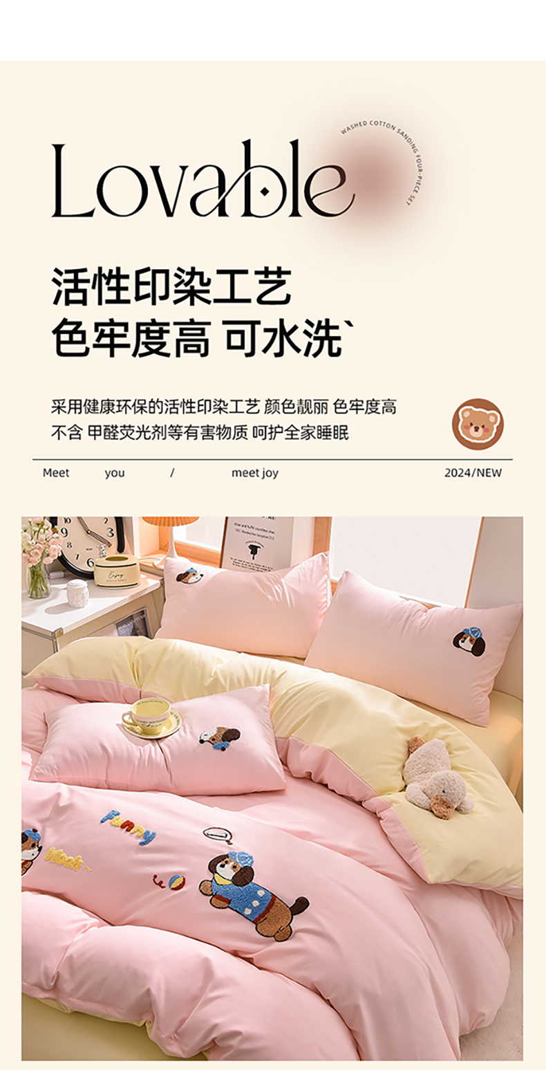 (总)乐窝家纺仓储 2025新款全棉纯棉毛巾绣四件套,卡皮巴拉,小兔子,熊猫乐园