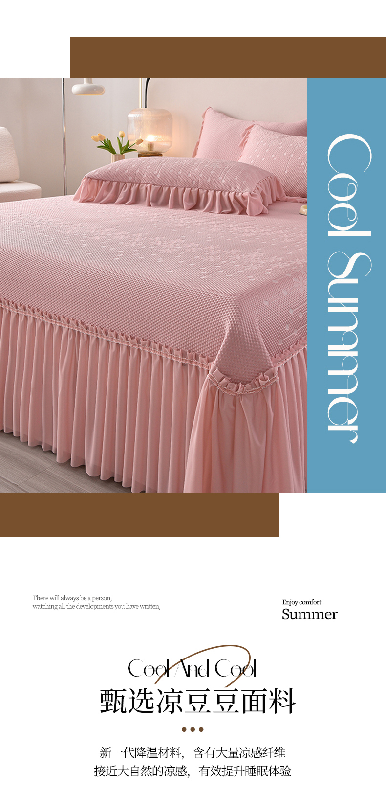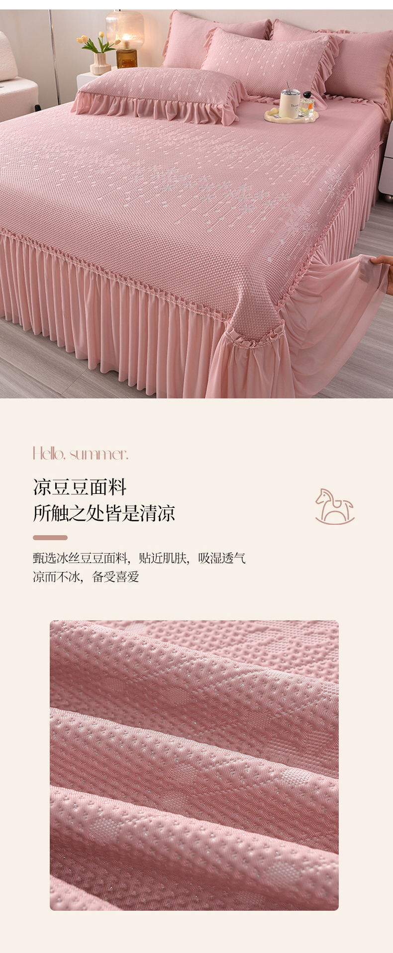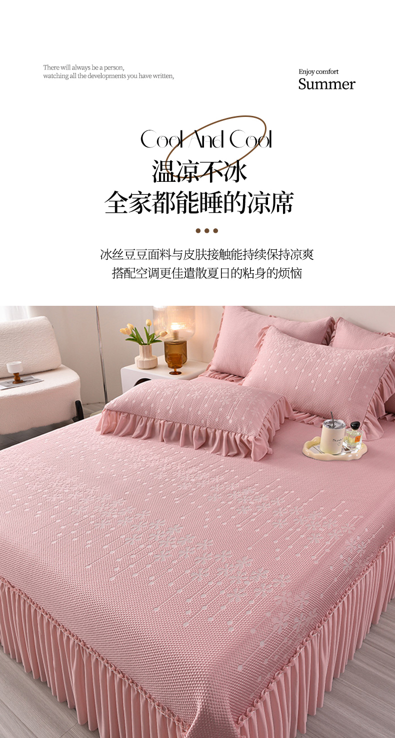 畅畅家纺 2025新款立体提花凉豆豆席床裙款凉席 幸运草-粉
