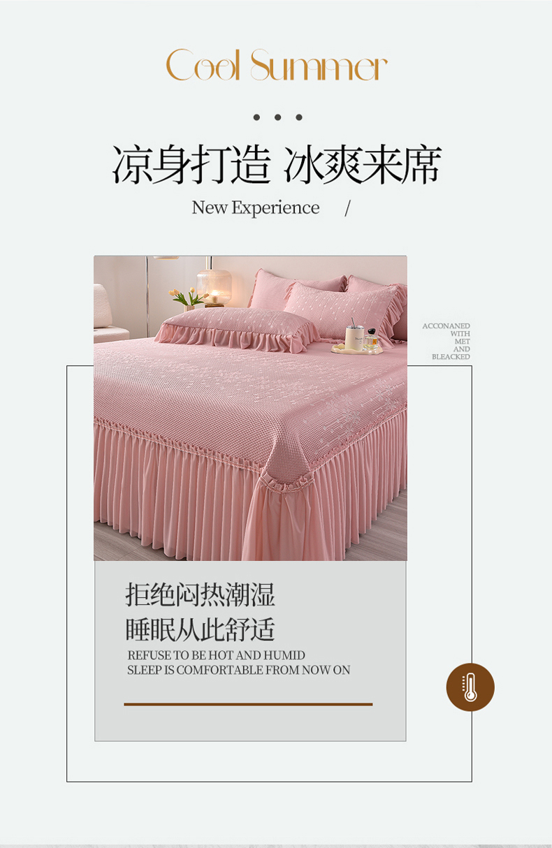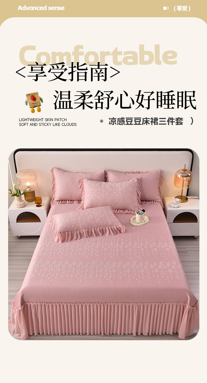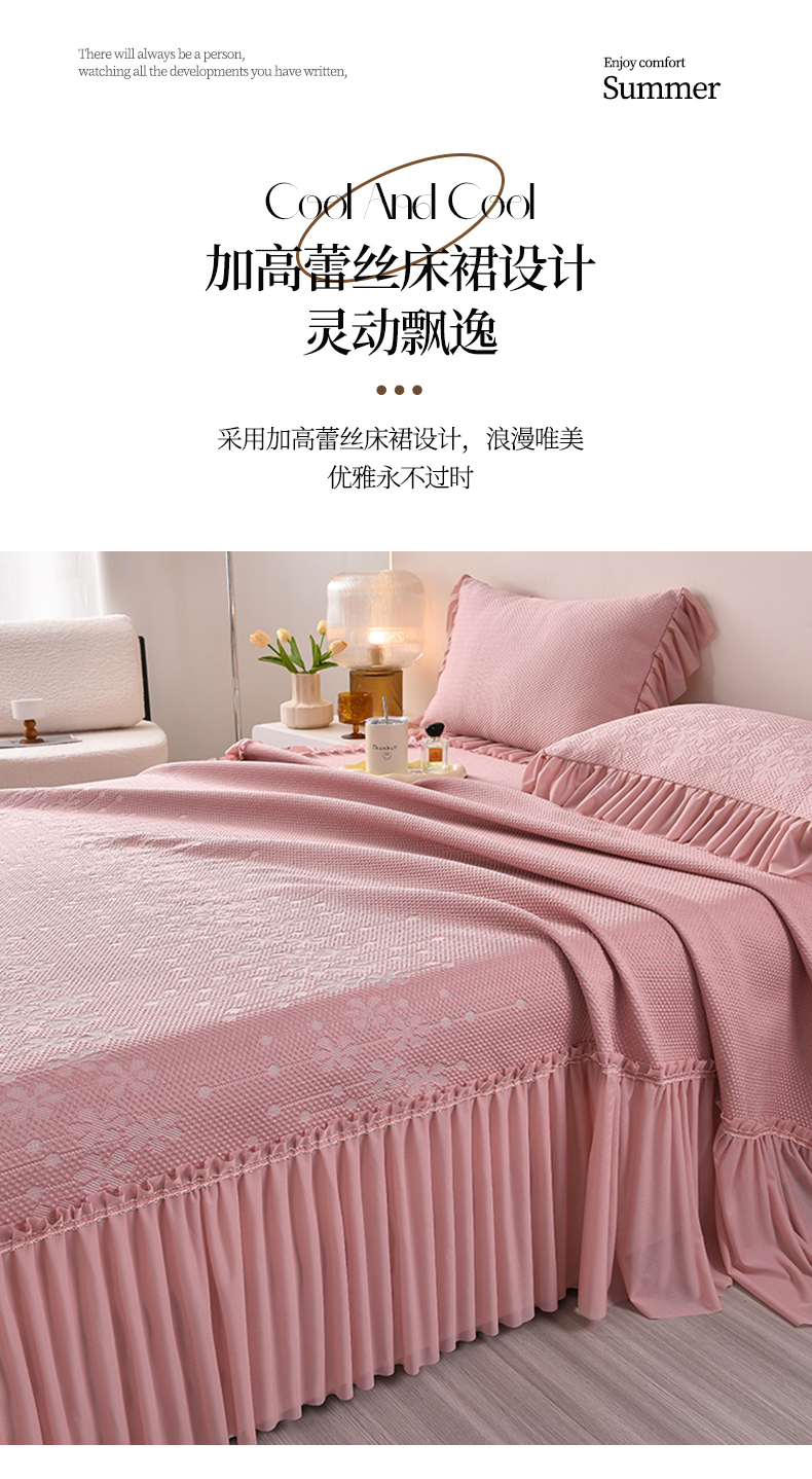 畅畅家纺 2025新款立体提花凉豆豆席床裙款凉席 幸运草-粉