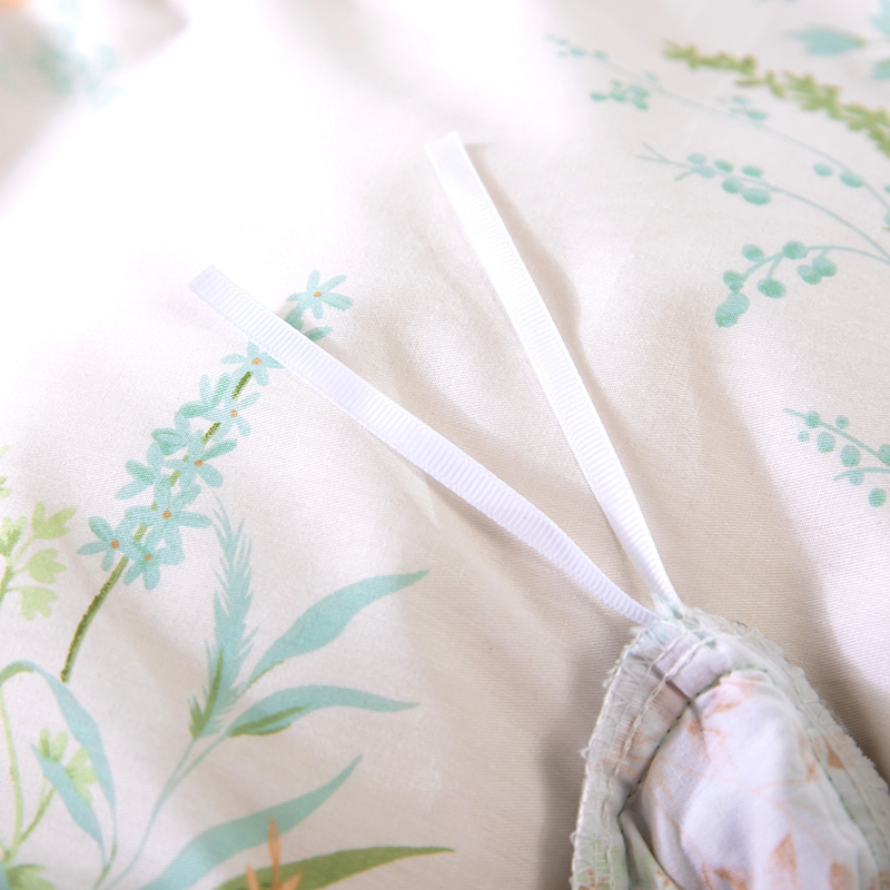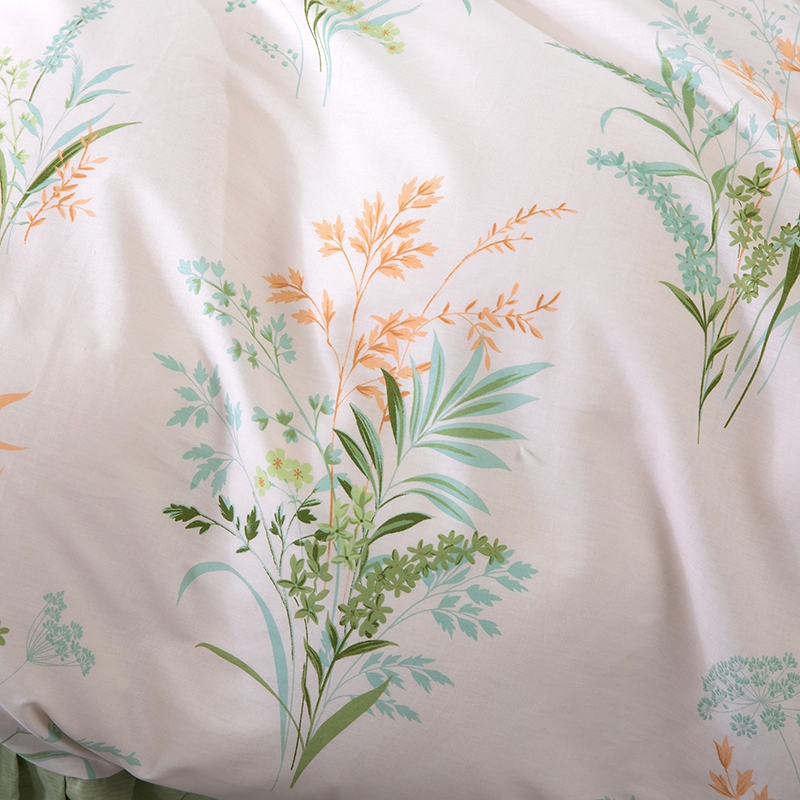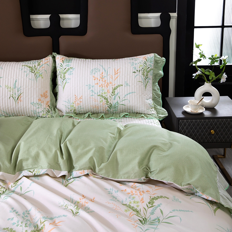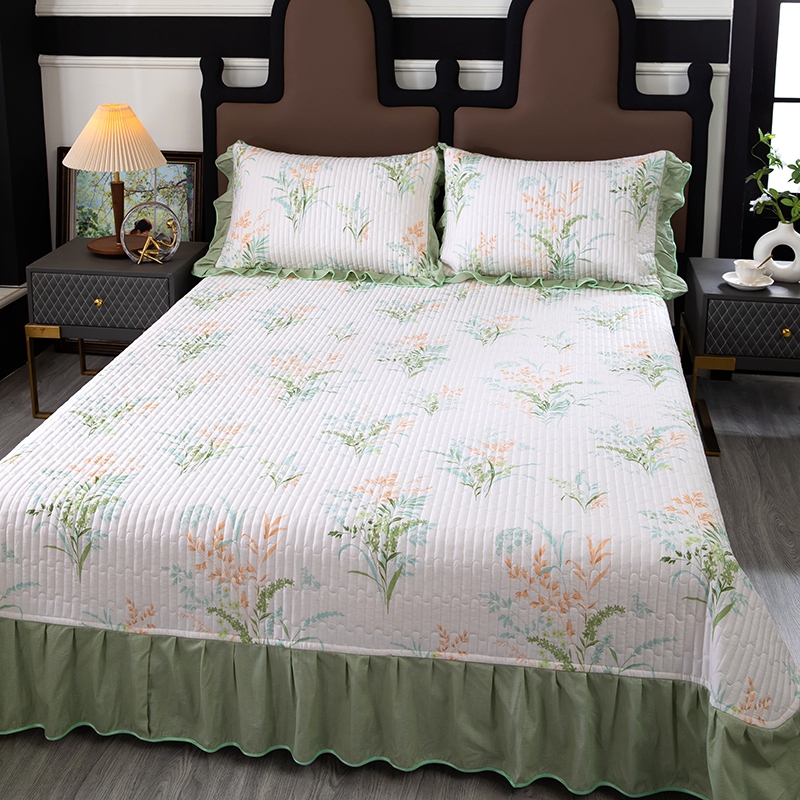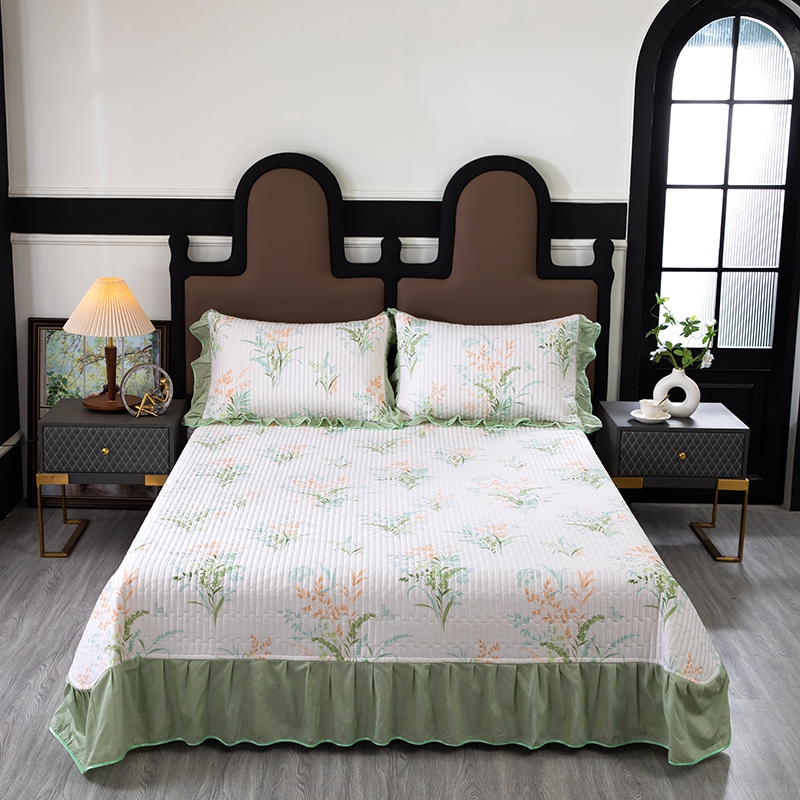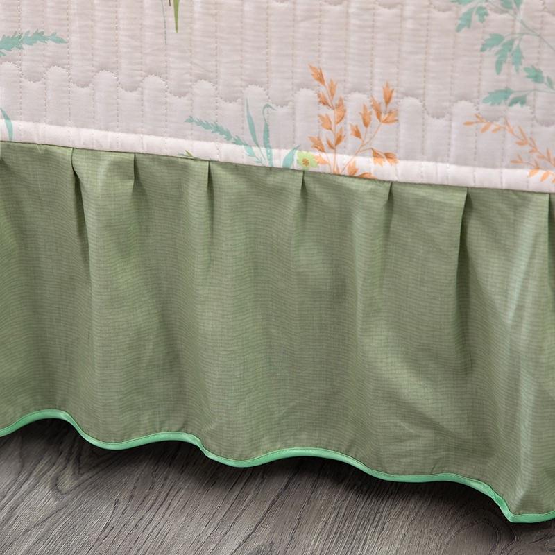 商品名称:木兰花2025新款全棉印花法式韩版花边夹棉床盖床裙款四件套 朱莉安-绿