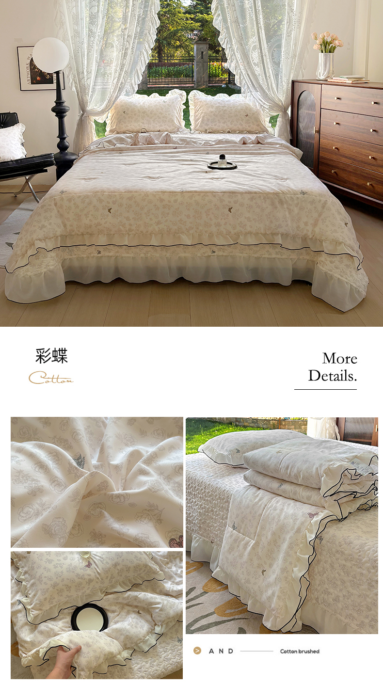 被子 > 夏被 > 韩秀 2025新款水洗棉夹棉韩版花边夏被小清新针织棉小碎花皱皱棉双层纱软糯感夏凉被空调被泡泡棉被四季跑量款 彩蝶