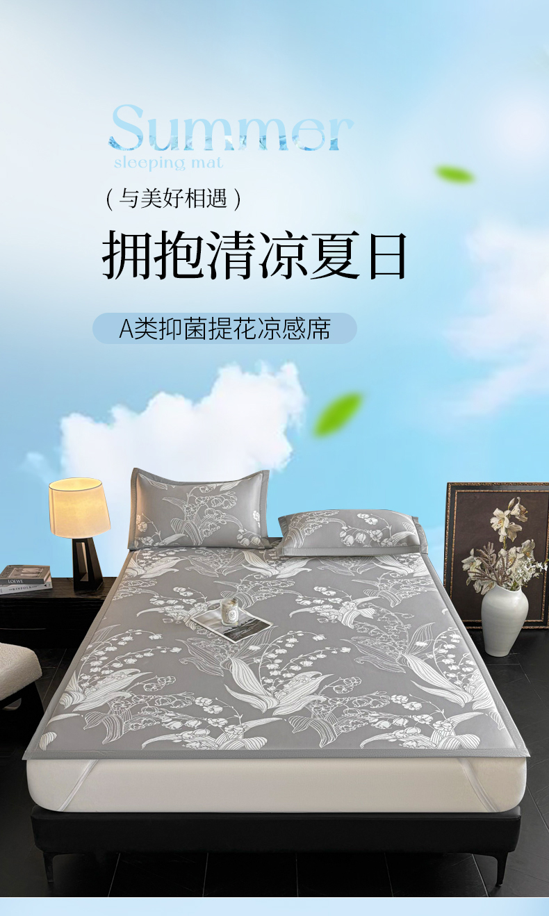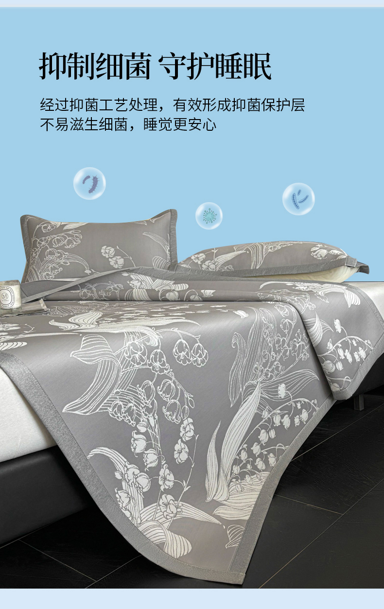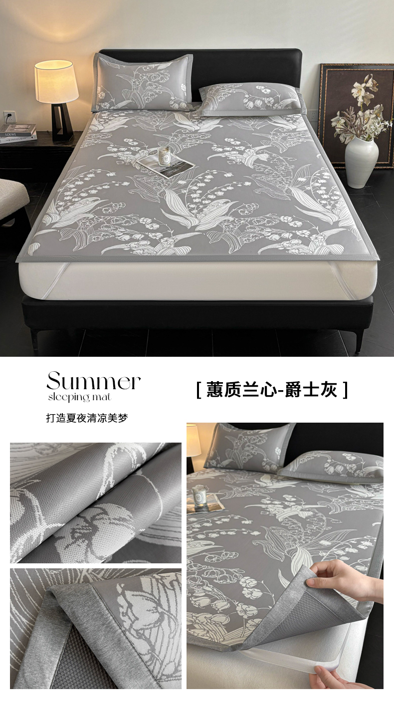 商品名称:2025新款A类PE提花凉席-蕙质兰心 蕙质兰心-爵士灰