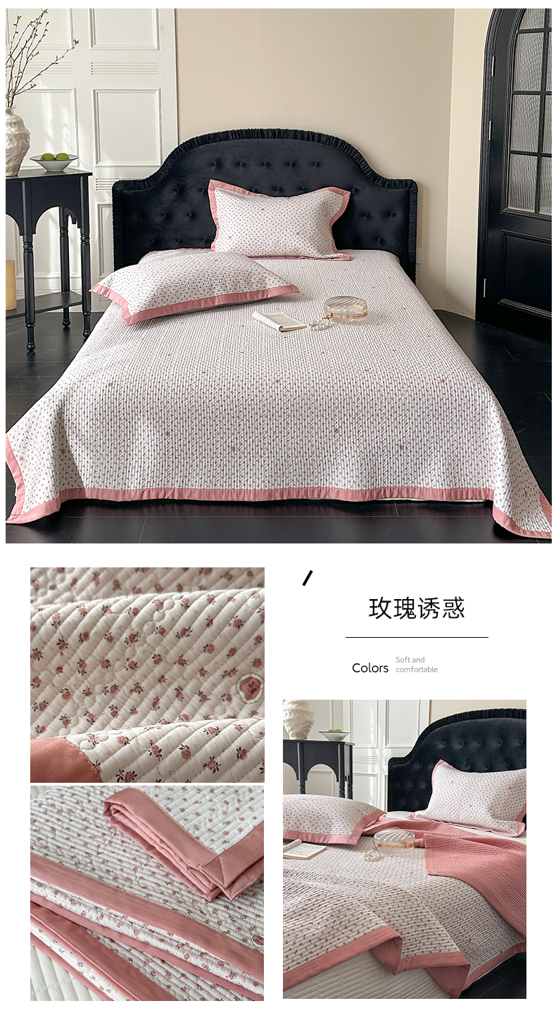 茉夕家纺 2025新款莫代尔天丝夹棉床盖 玫瑰诱惑
