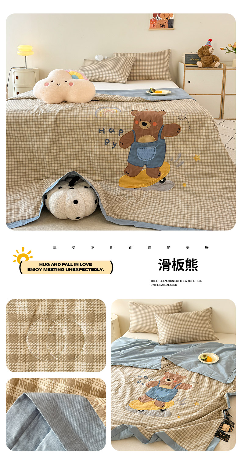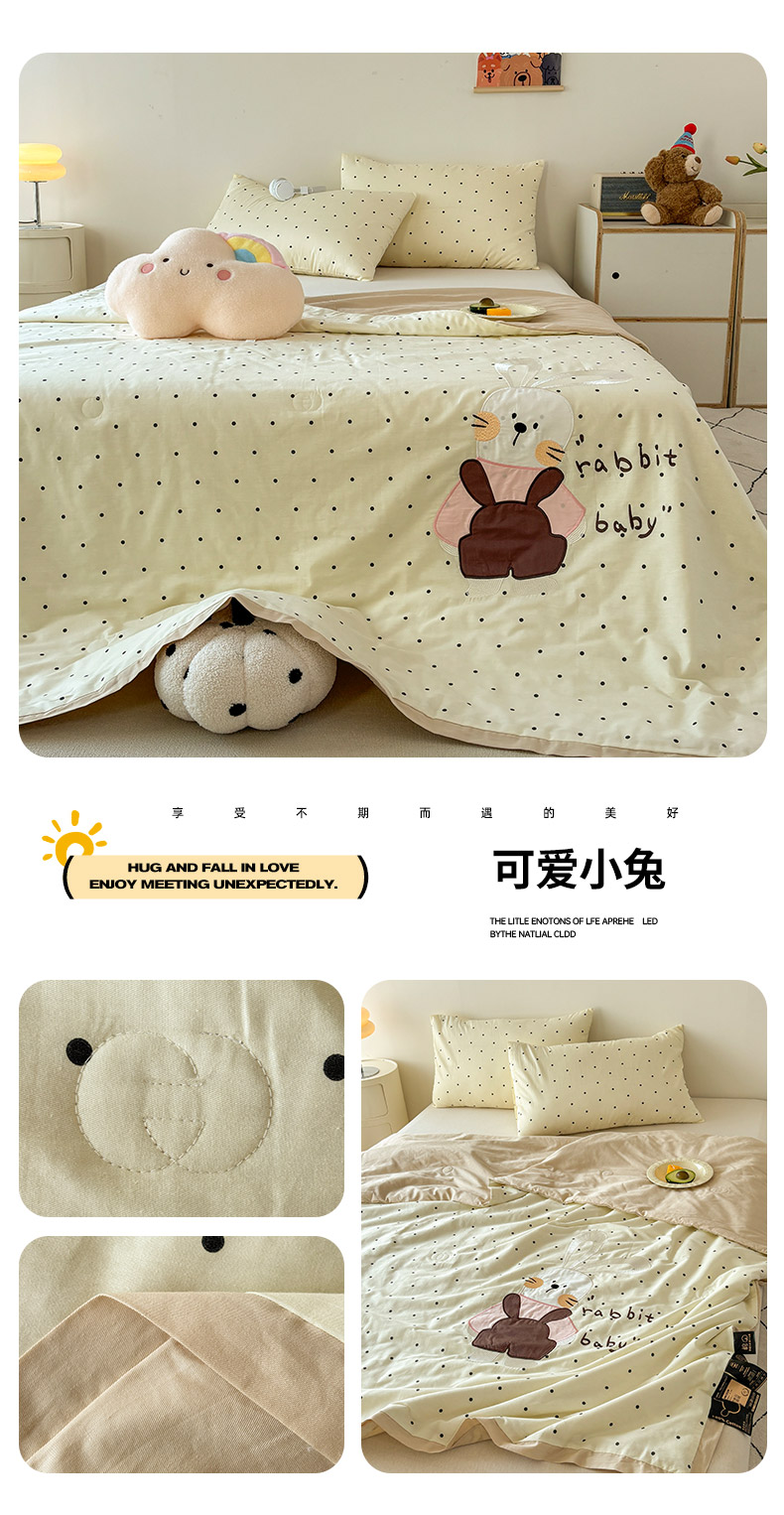 (总)2025新款全棉双层皱皱沙印花花边30%大豆夏凉被纯棉夏被被子被芯,赫本熊,花梦,花期,萌犬,墨颜,星月,玉兔-绿