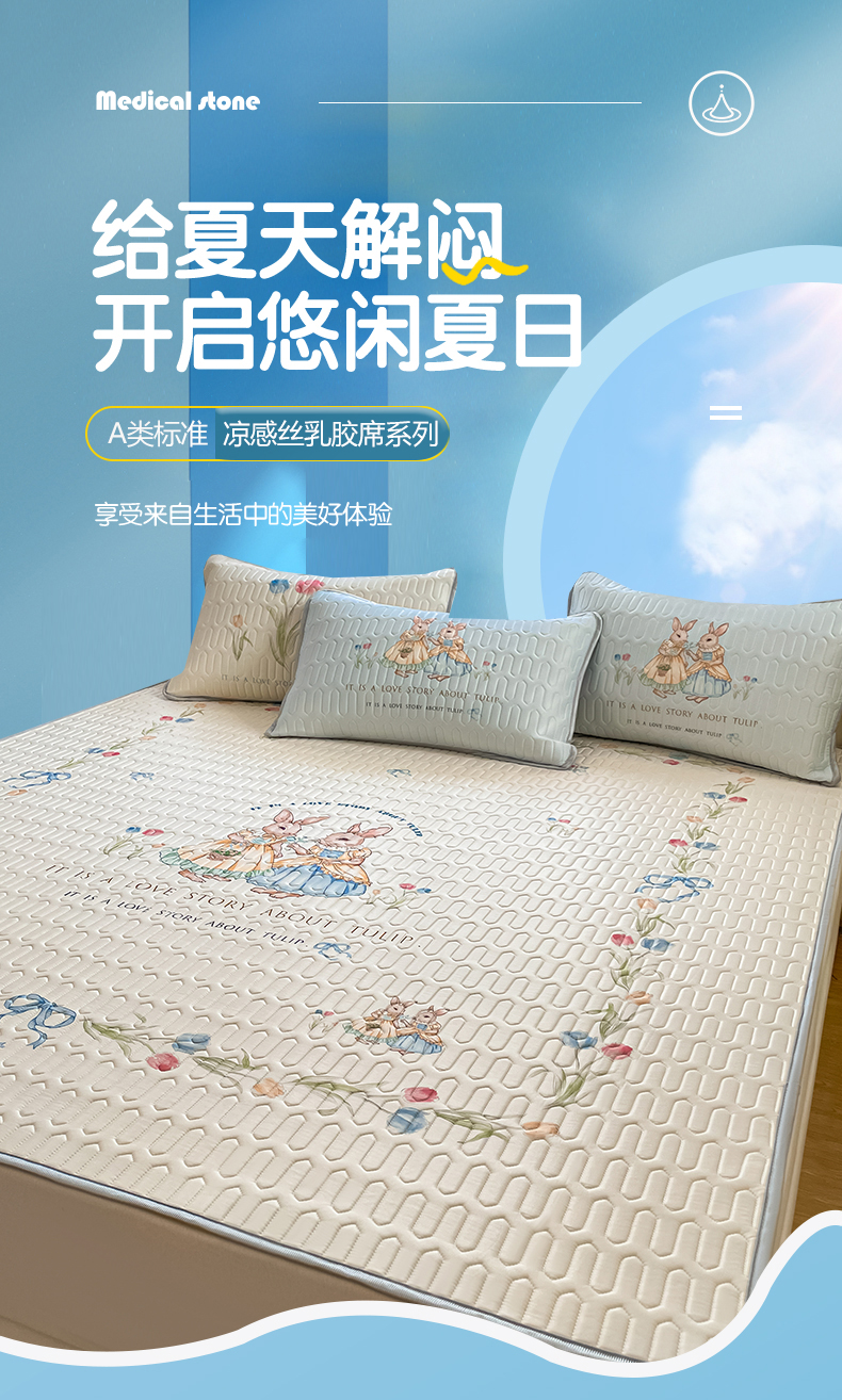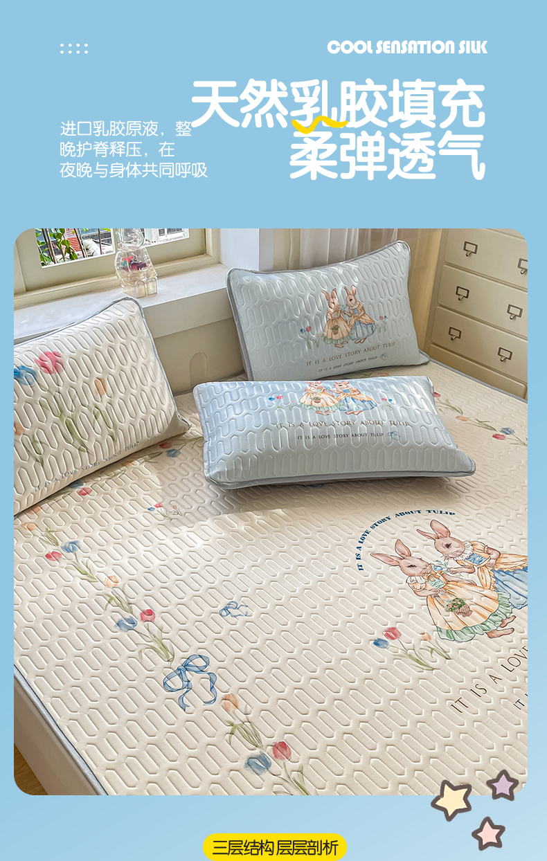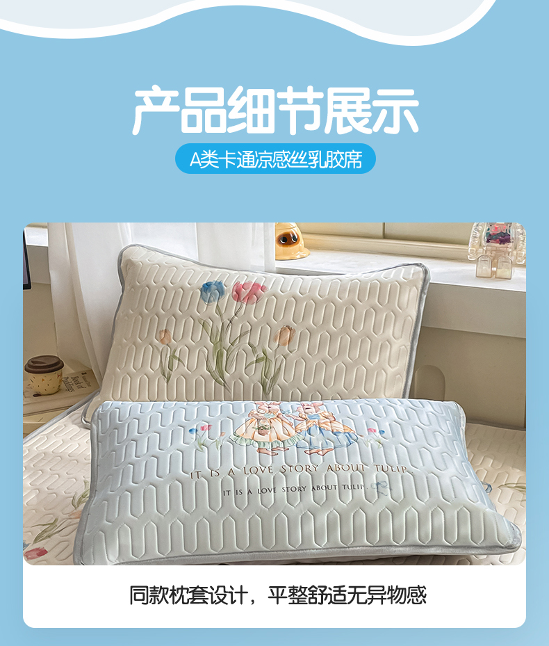 商品名称:布卢姆床垫 2025新款卡通A类大版数码凉感丝乳胶凉席 莫奈花园