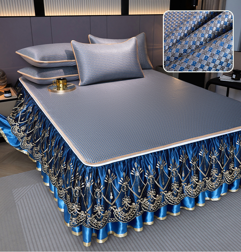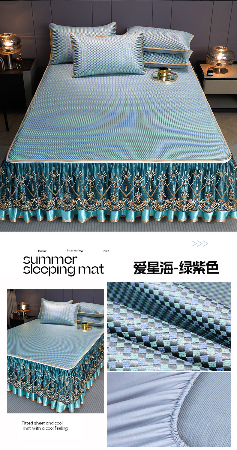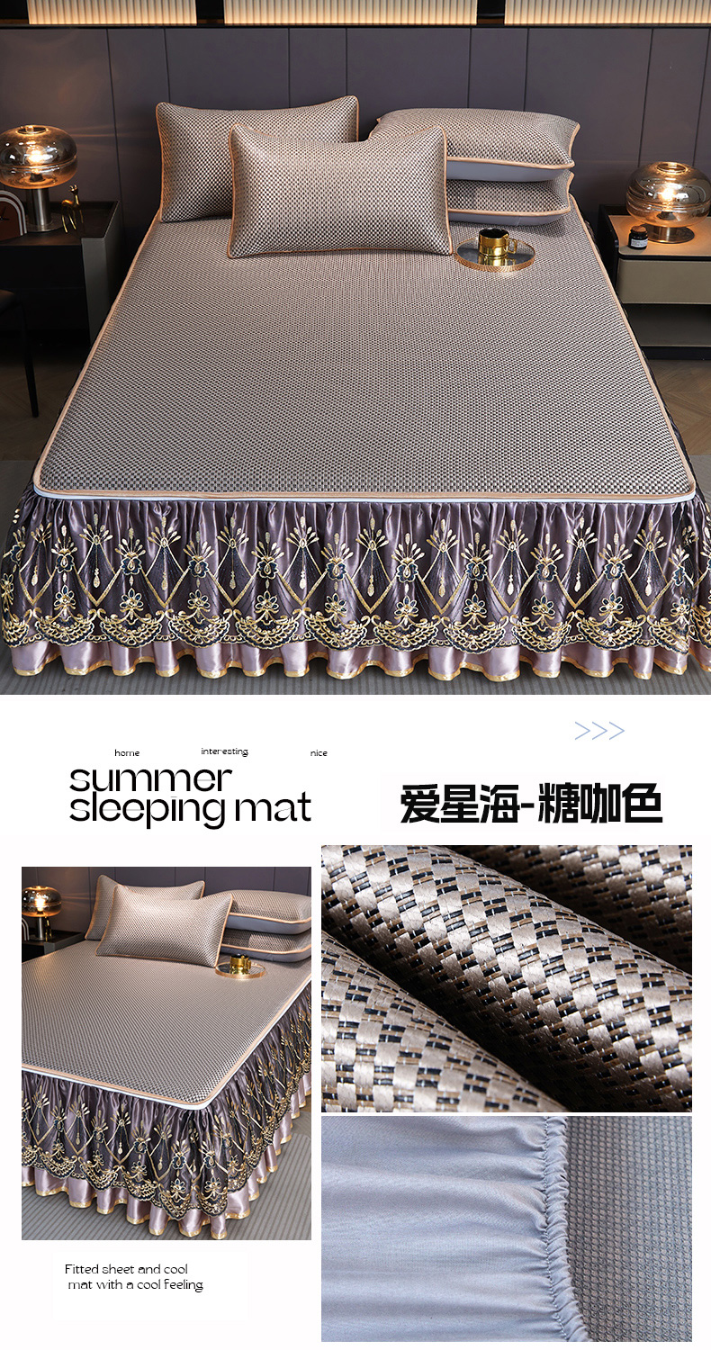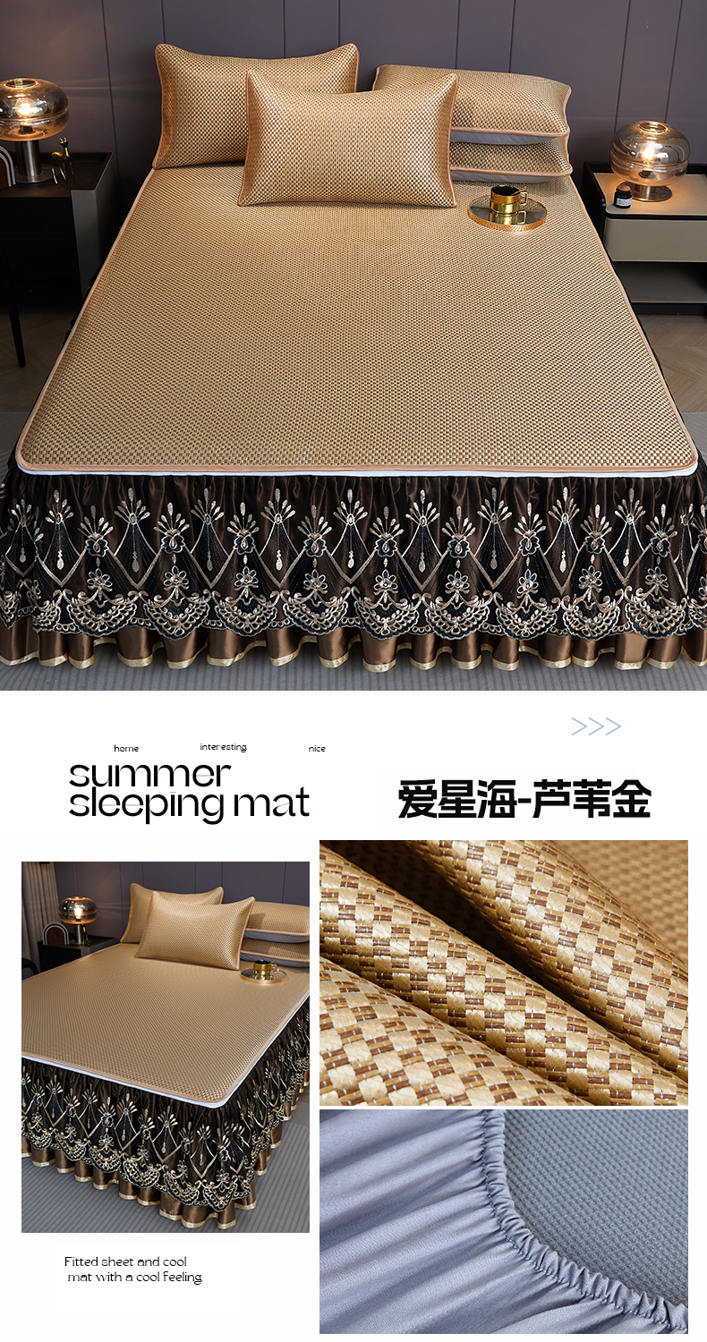 (总)罗艺轩 2025新款可拆卸床笠式床裙凉感冰丝藤席三件套-爱星海