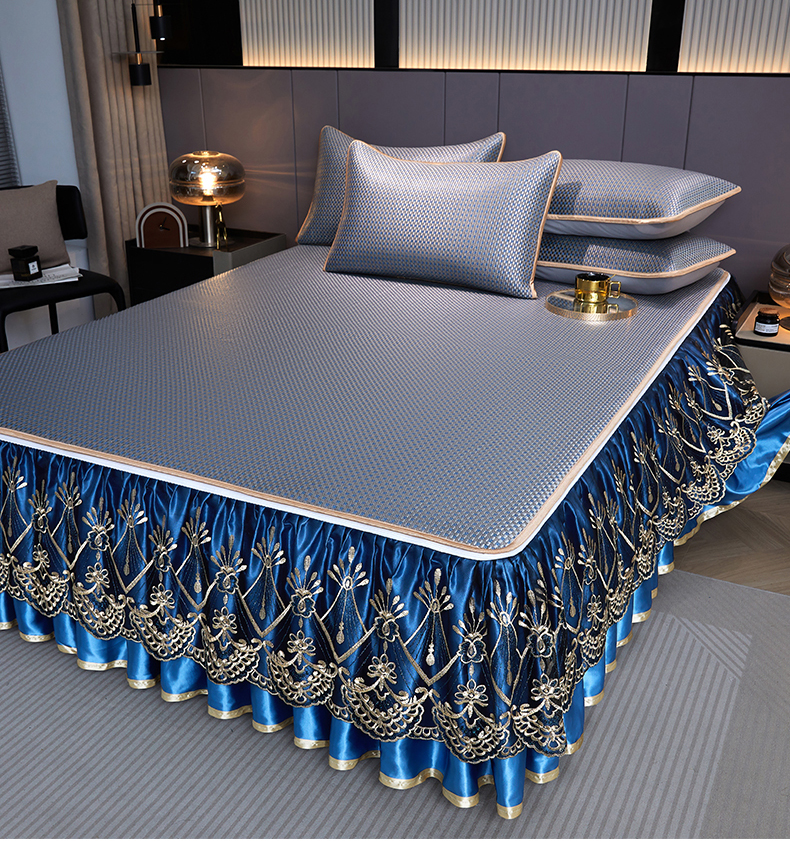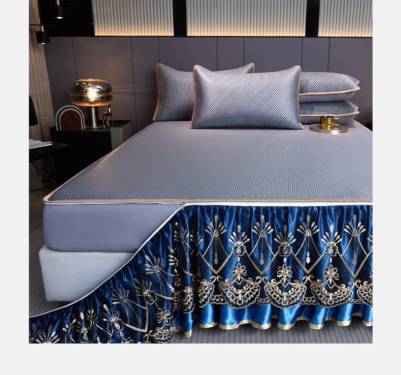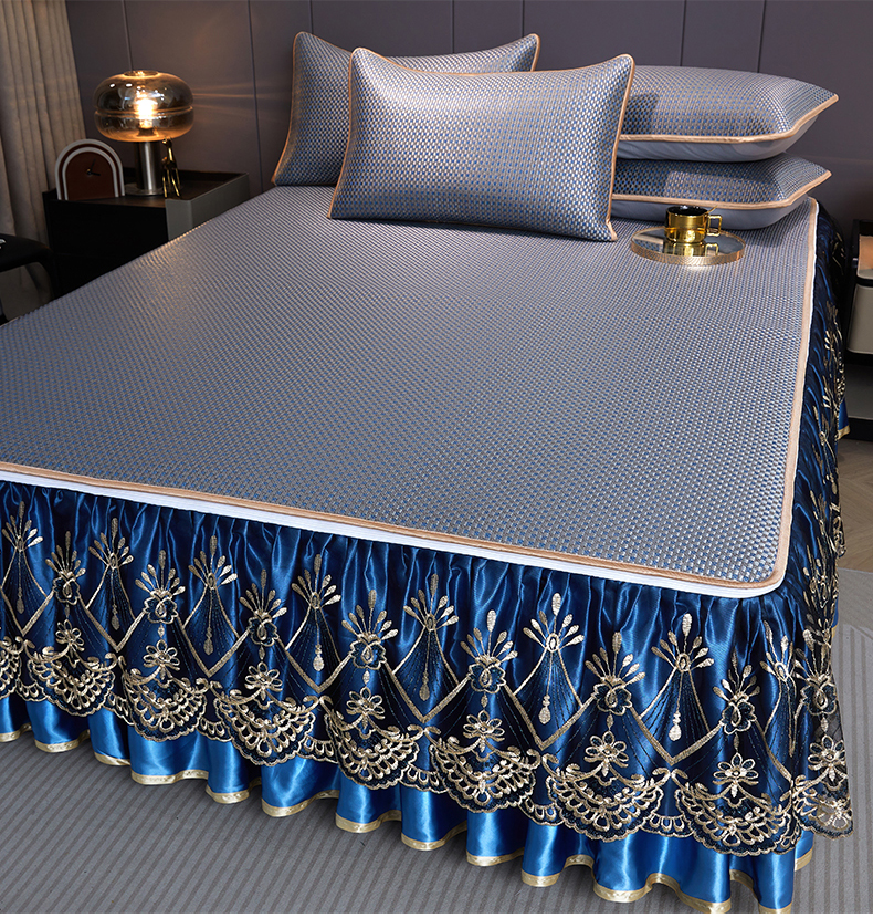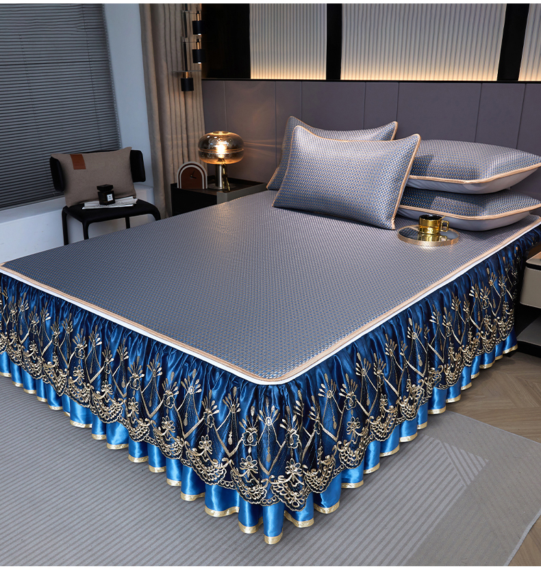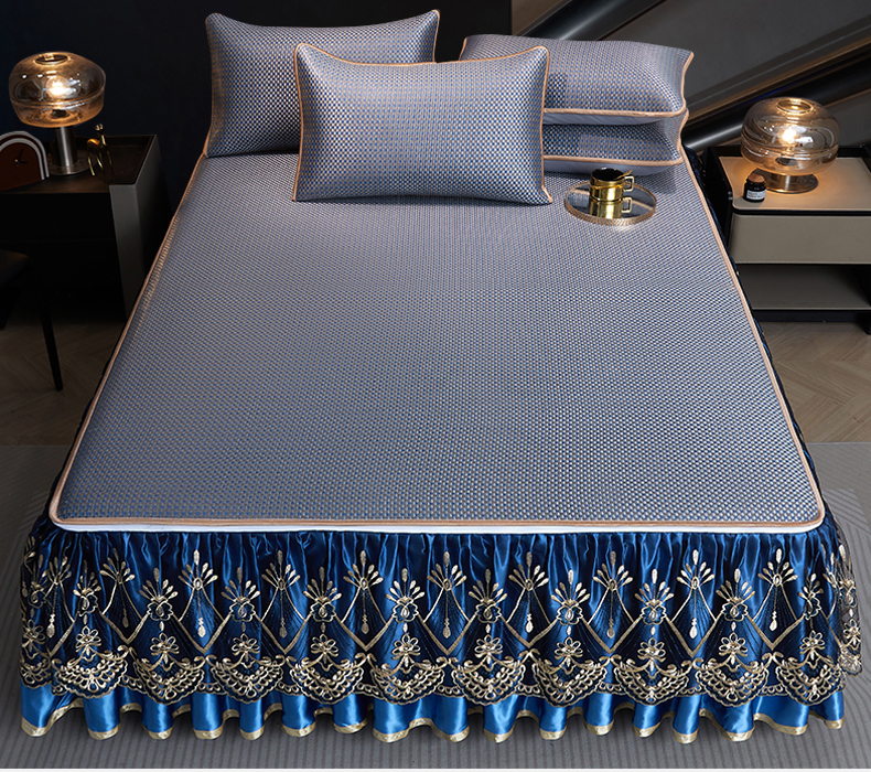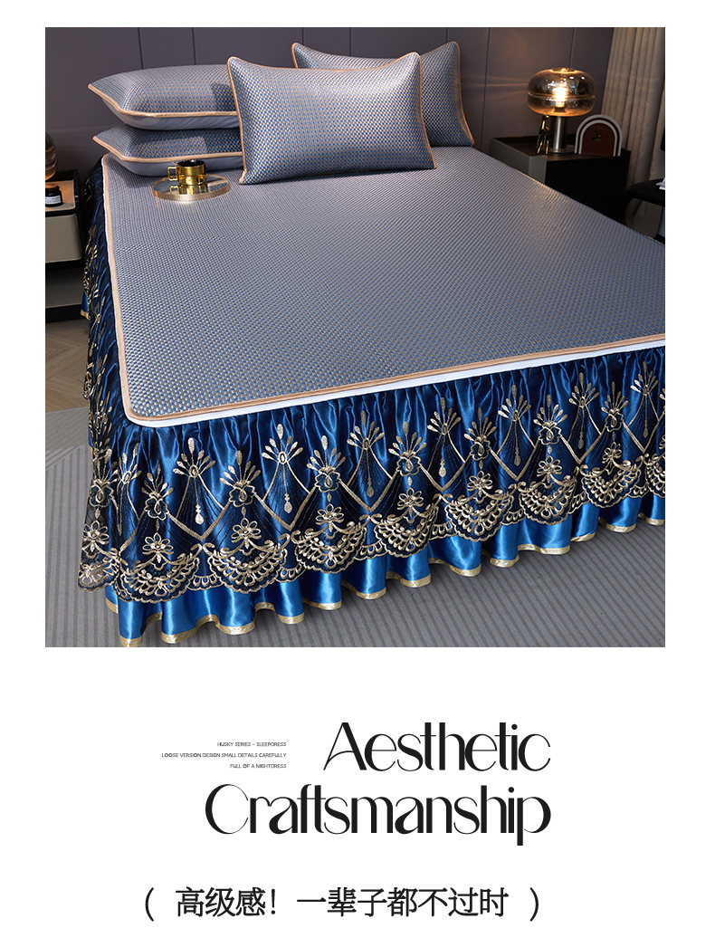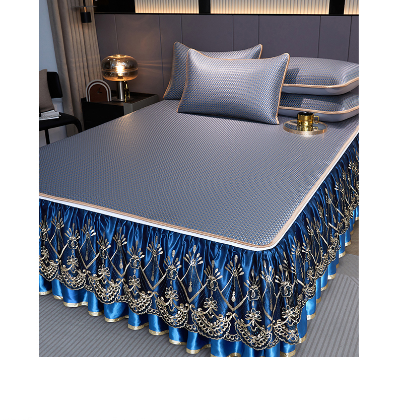 (总)罗艺轩 2025新款可拆卸床笠式床裙凉感冰丝藤席三件套-爱星海