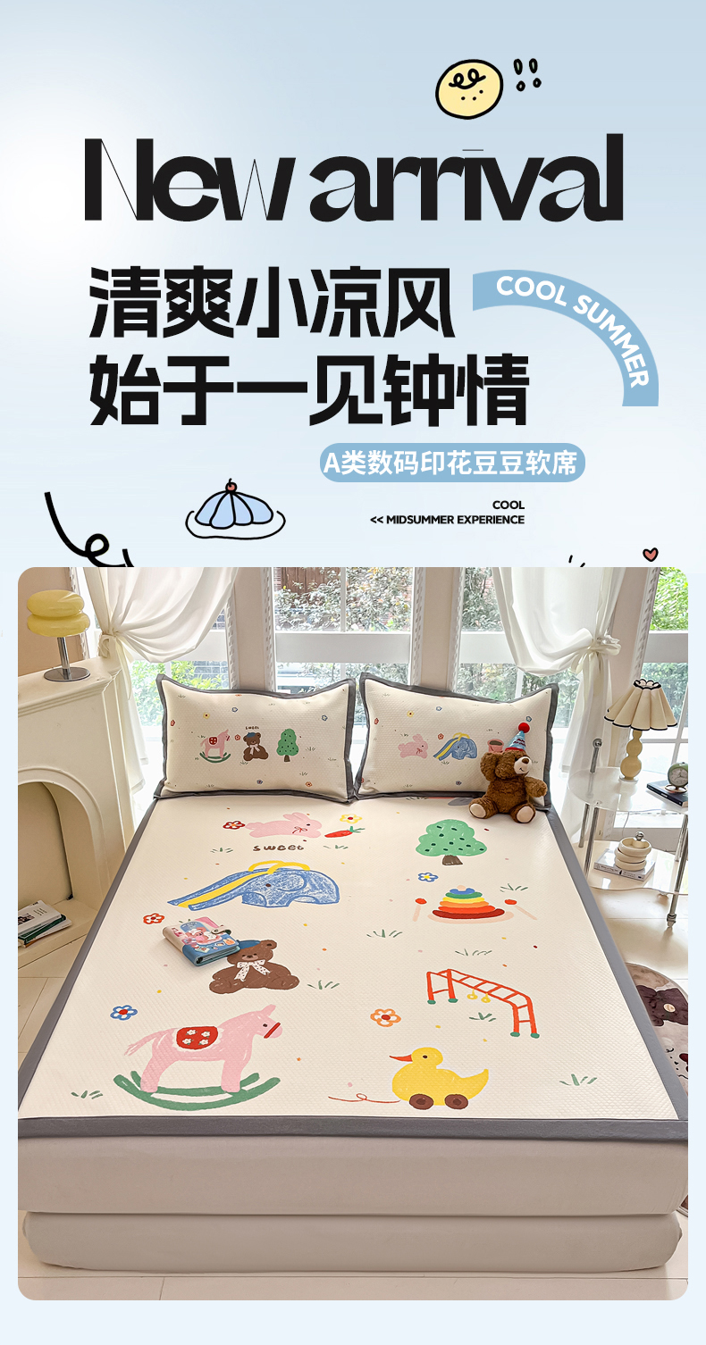 商品名称:Sweet dreams甜梦 2025新款数码印花凉感豆豆软席凉席席子系列-大版 格子小鸡