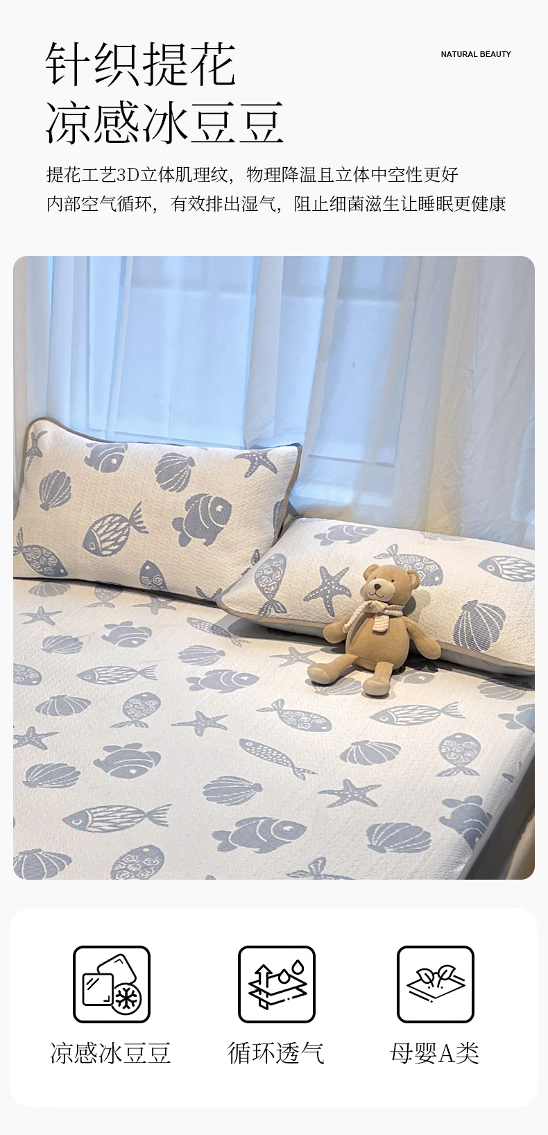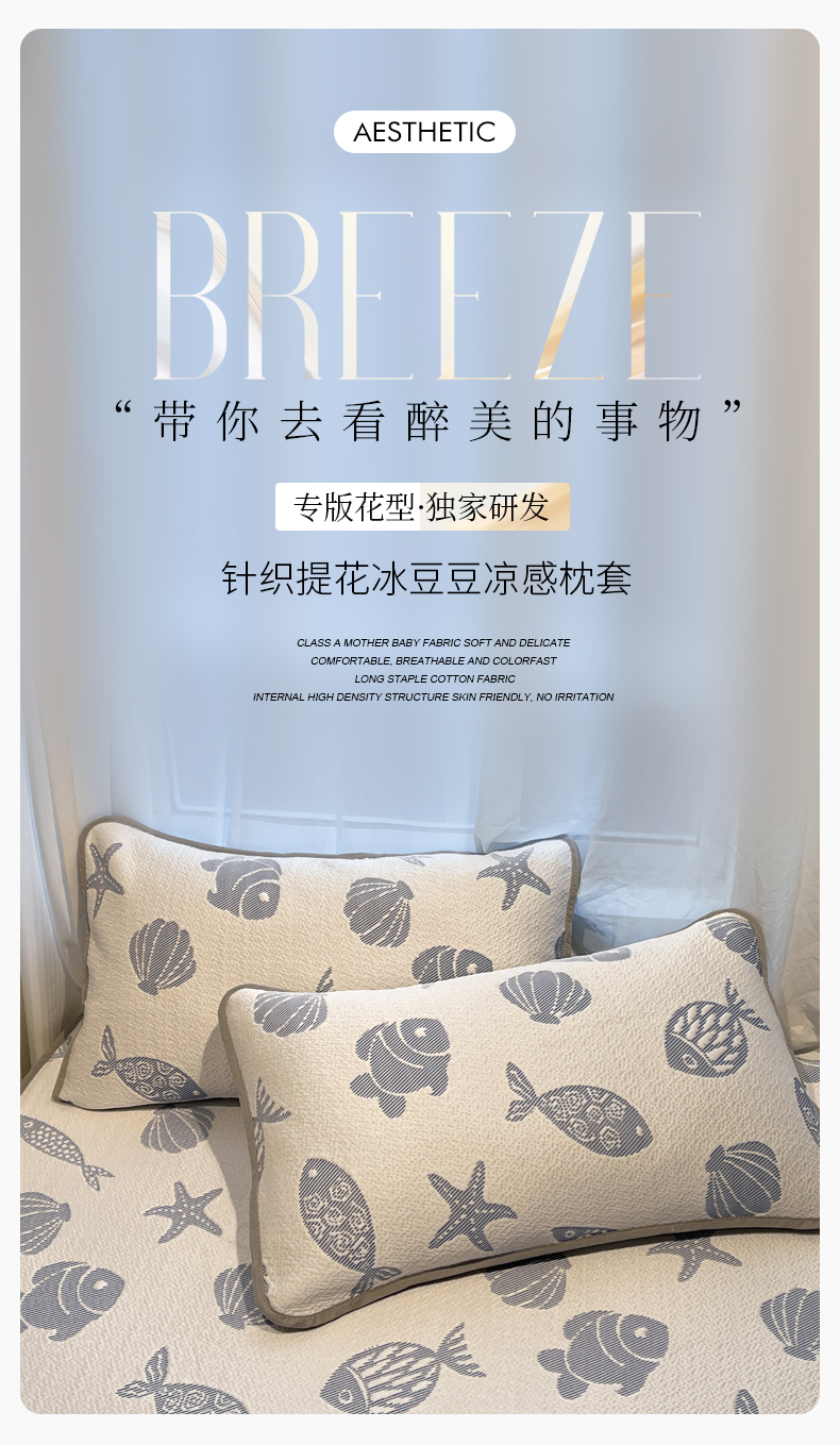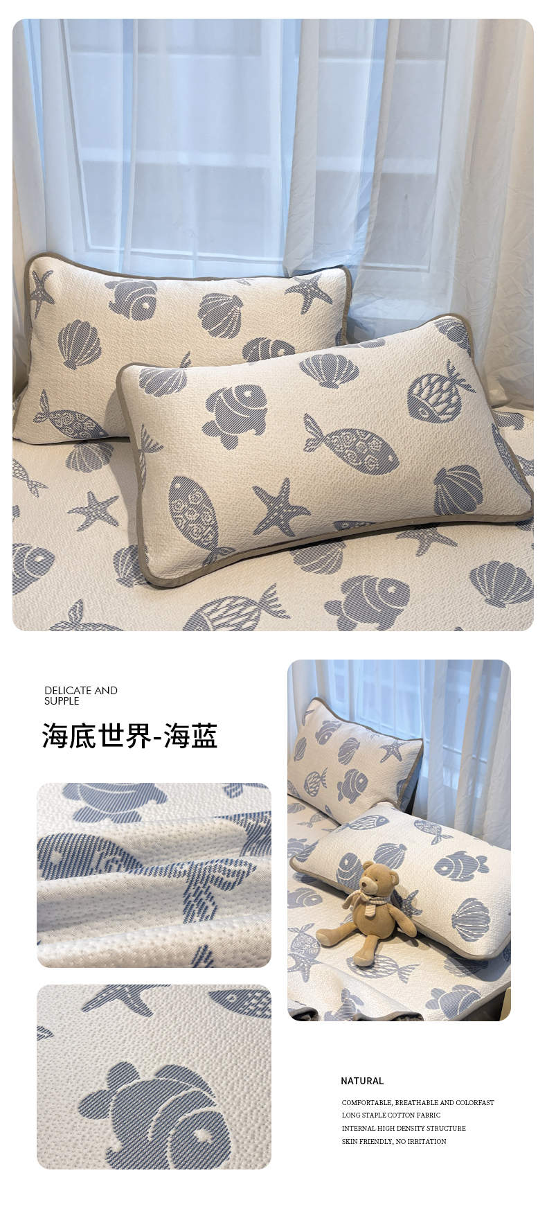 商品名称:LIFE.丽芙 2025春夏季新品A类针织提花冰凉豆豆凉感枕头套机包边款(风格二) 海底世界-海蓝