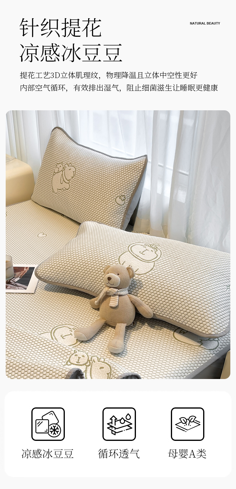 商品名称:LIFE.丽芙 2025春夏季新品A类针织提花冰凉豆豆凉感枕头套机包边款(风格二) 卡皮巴拉-绿