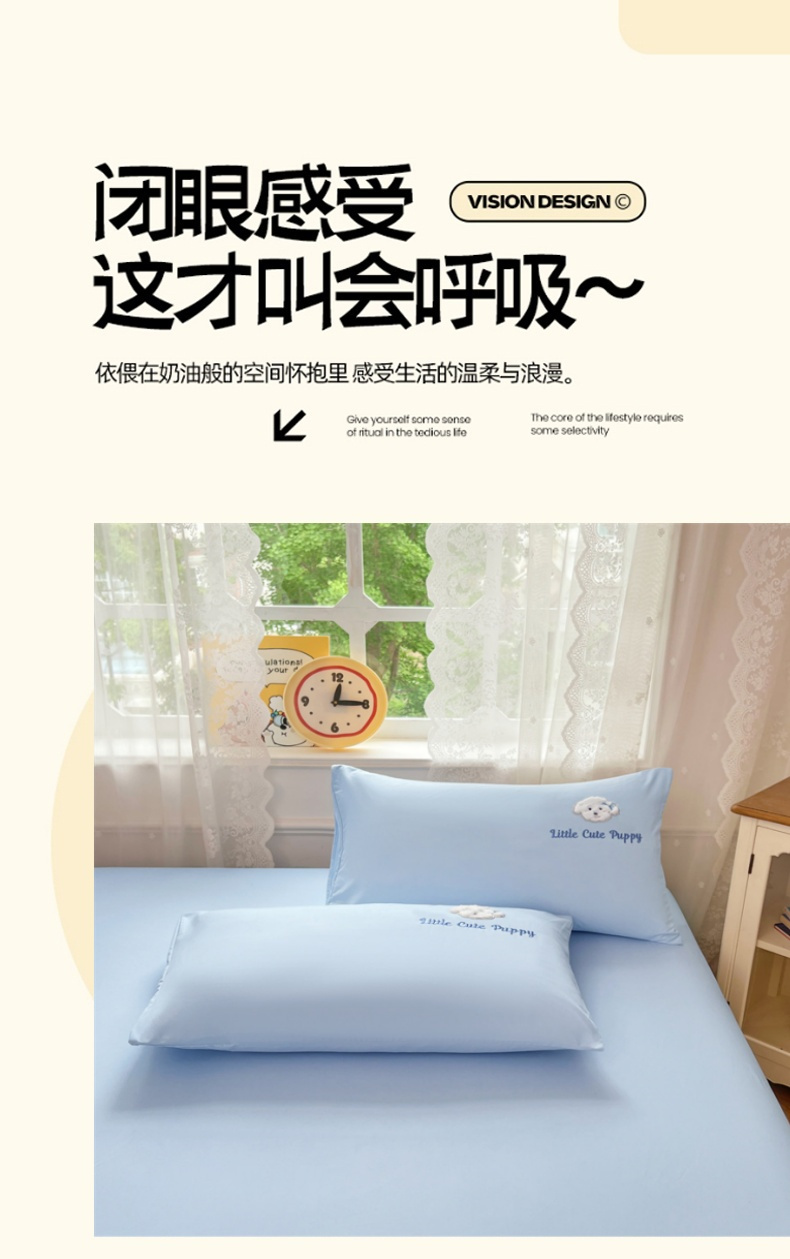 圣比熊 2025新款 兔毛贴布绣卡通ins风水洗棉枕套学生宿舍枕芯套情侣枕头套(带买家秀) 萌萌幸运汪-海盐兰
